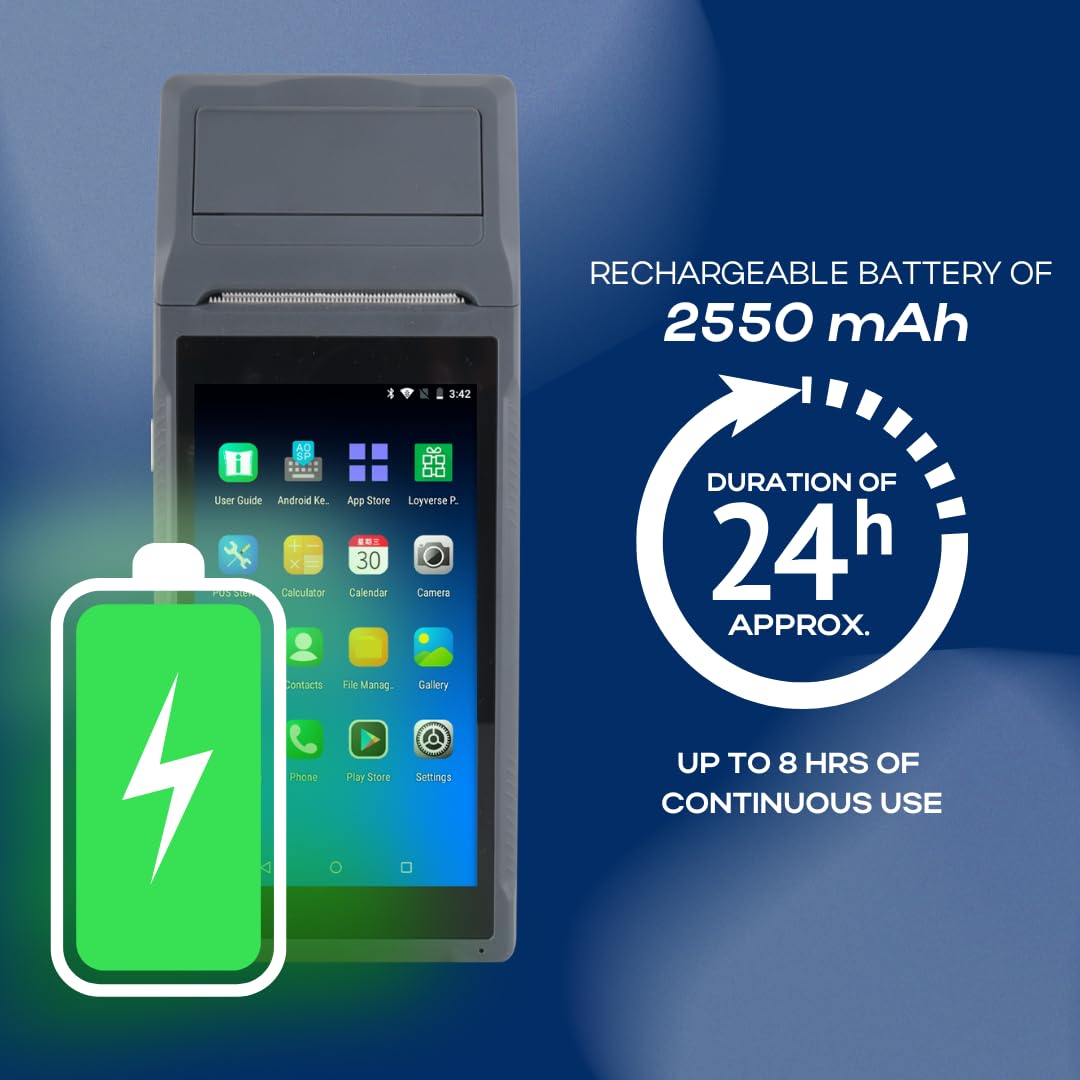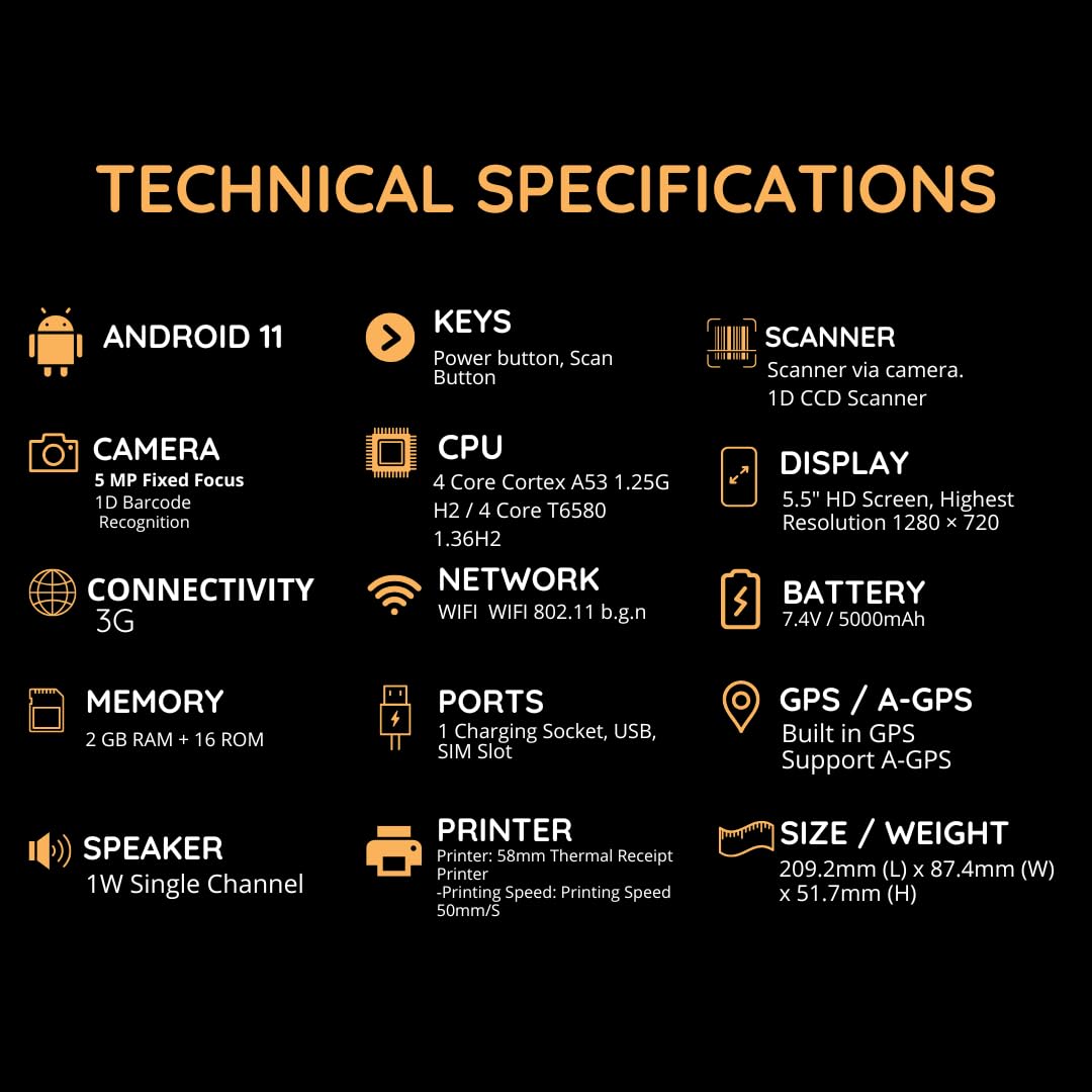 2GB RAM and 16GB Storage for Optimal Operation: With 2GB of RAM, the Q2i allows for efficient multitasking and uninterrupted operation. The 16GB internal storage (Nand Flash) provides ample space to store data, applications, and sales records.