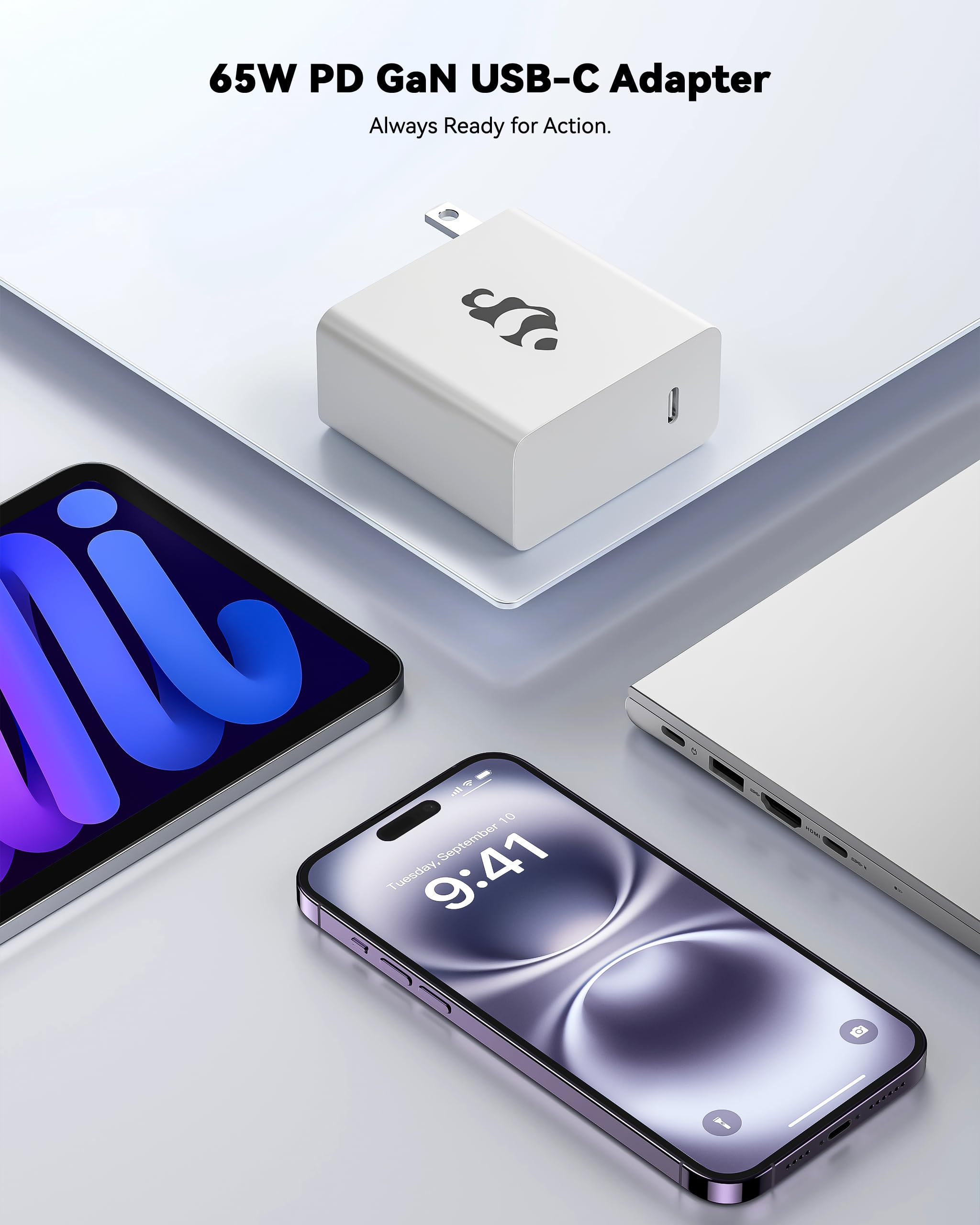 【65W USB-C Fast Charging for Life On-the-Go】 Boost your productivity anytime, anywhere. The included 65W USB-C fast charger juices up your laptop for hours of use in just 15 minutes. This versatile charger also powers your smartphone and tablet, making it the only charger you need to carry in your bag.