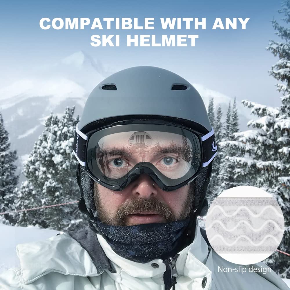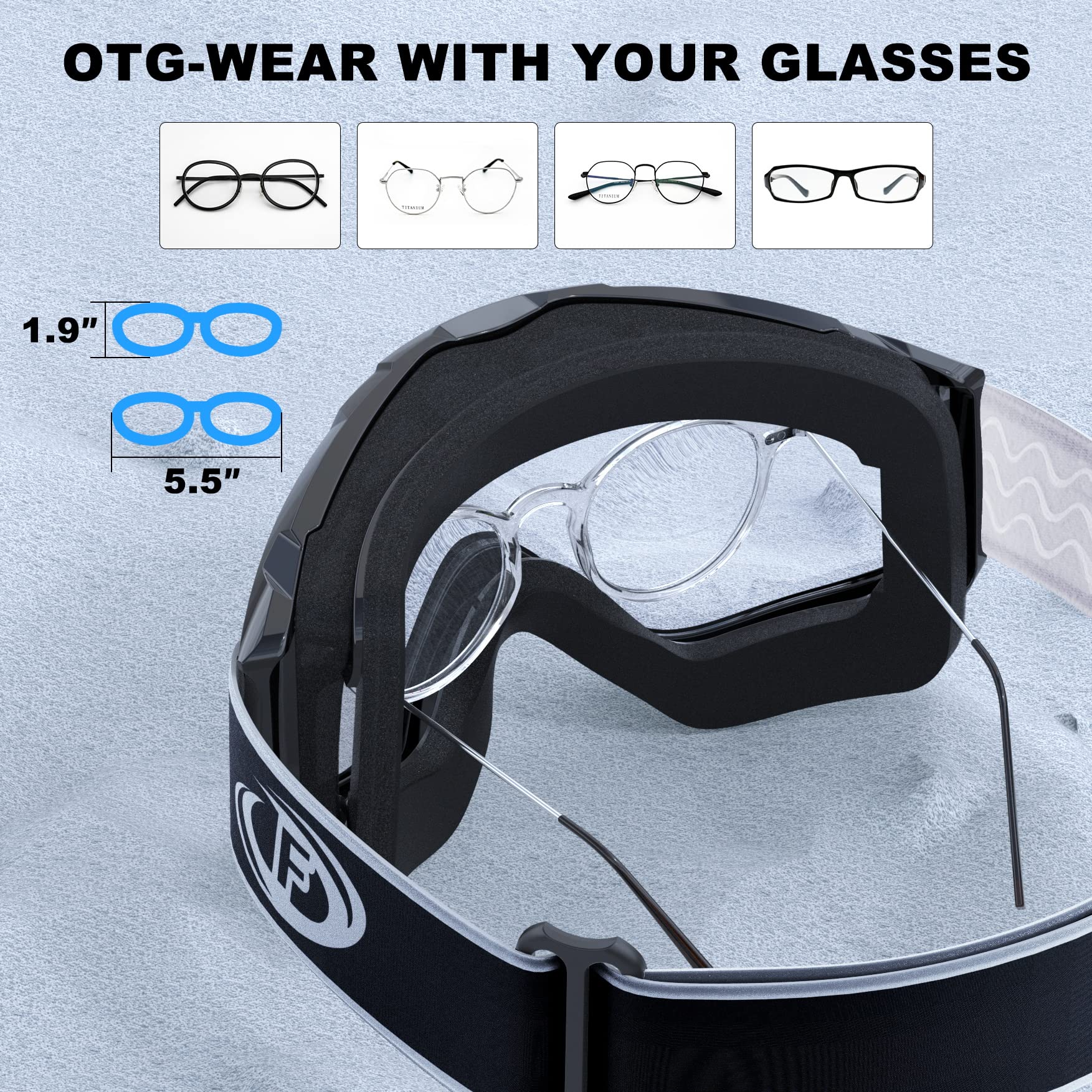 【Oversized OTG (above the glasses) design】-With the OTG (above the glasses) design, the Skiing glasses allow you to wear the glasses under the goggles, and the goggles are also suitable for those who wear glasses. It is perfect for skiing, skiing, snowboarding, ice skating, rock climbing, motorcycling/mountain riding, aerial driving, bungee jumping and more.