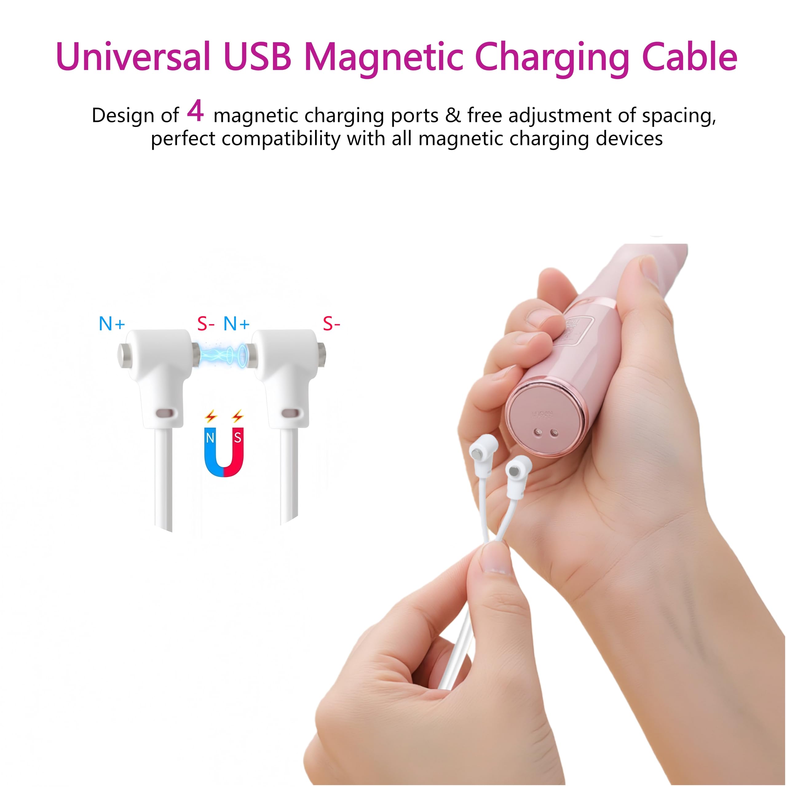 【One Cable for Multiple Devices】 Simplify your life and reduce clutter. This single universal magnetic cable can charge a wide range of your magnetic devices, from personal massagers and rechargeable toys to electric toothbrushes and other gadgets, making it a versatile and wise investment.
