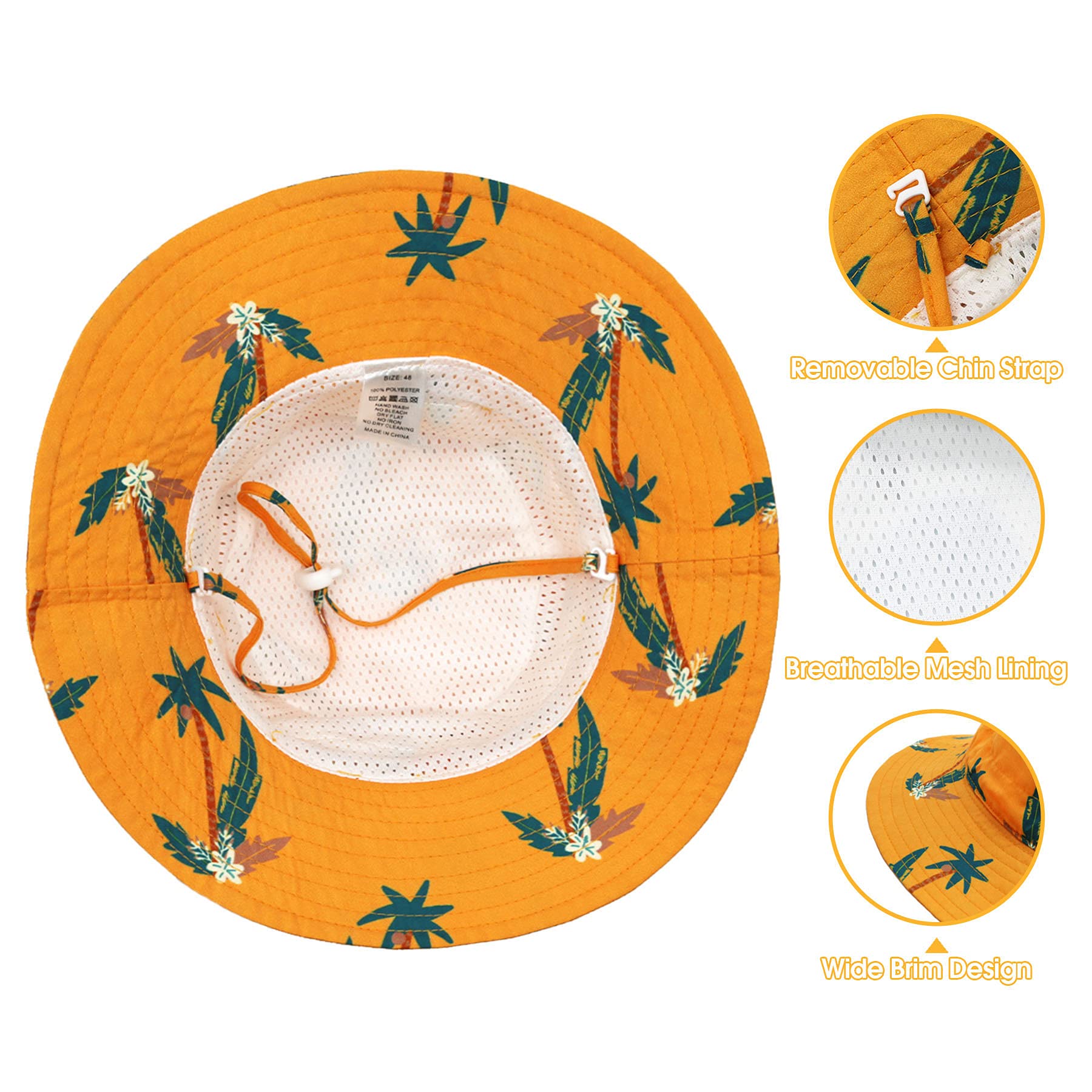 98% SUN PROTECTION: All our baby sun hats are made of high-quality polyester which is more skin-friendly and comfortable. UPF 50+ sun protective fabric material can block up 98% of harmful UVA and UVB Rays! Also, the breathable mesh lining greatly makes your babyβs head cool, dry and ventilated.