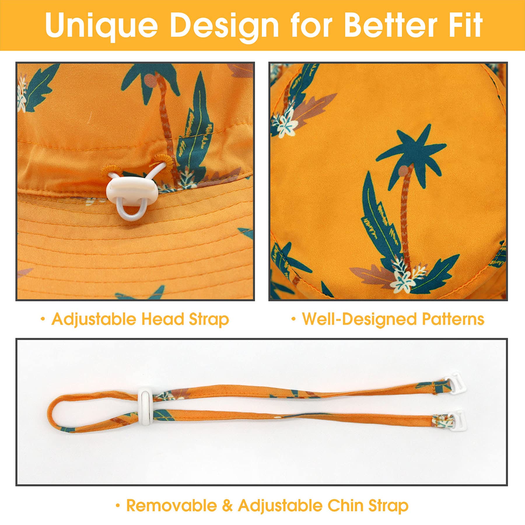 FITS WELL & SAFE: Our baby hatsβ chin straps and head straps offer a customized fit and adjust as your baby grows. Chin-strap feature protects the hat from being blown away on windy days and specifically designed to help prevent choking.