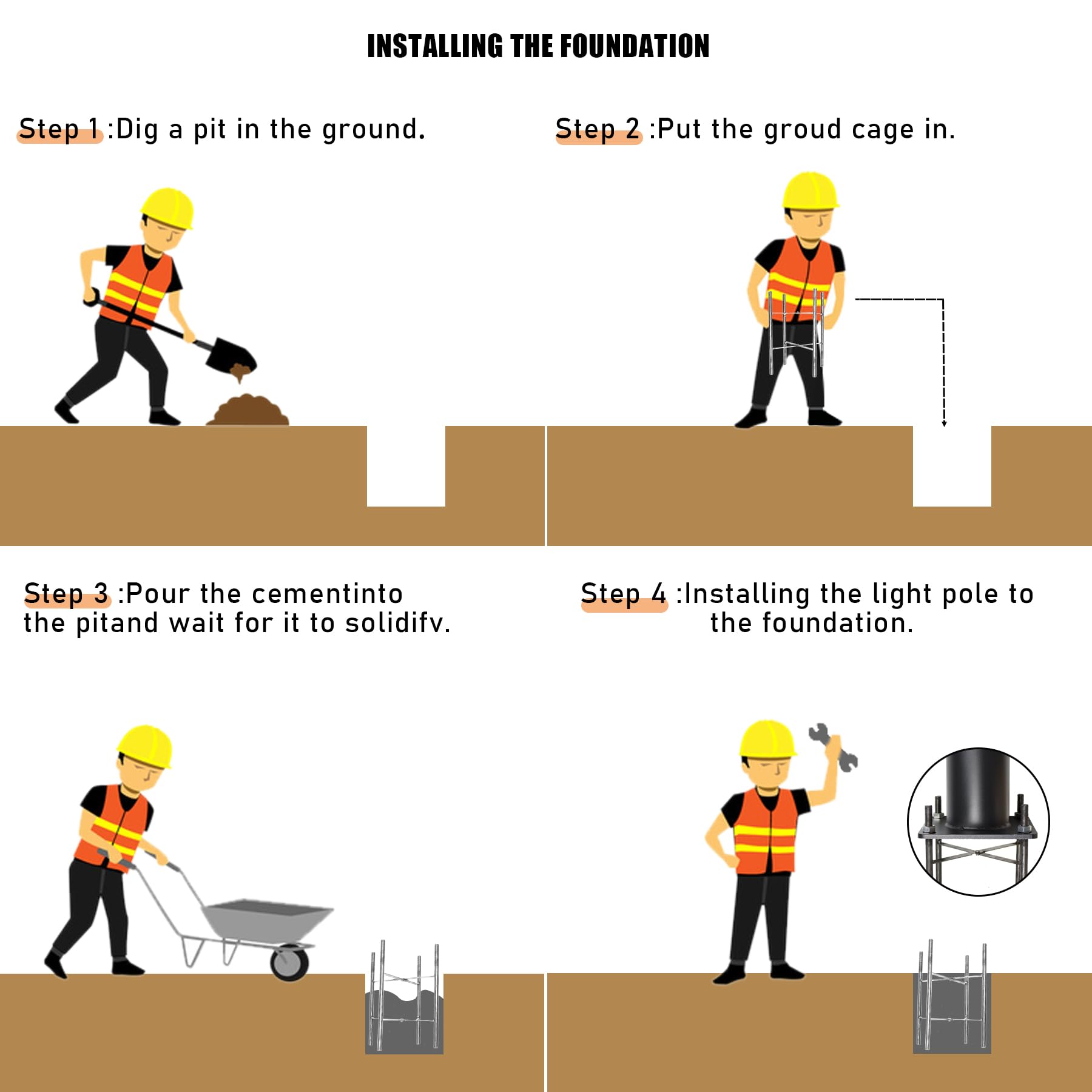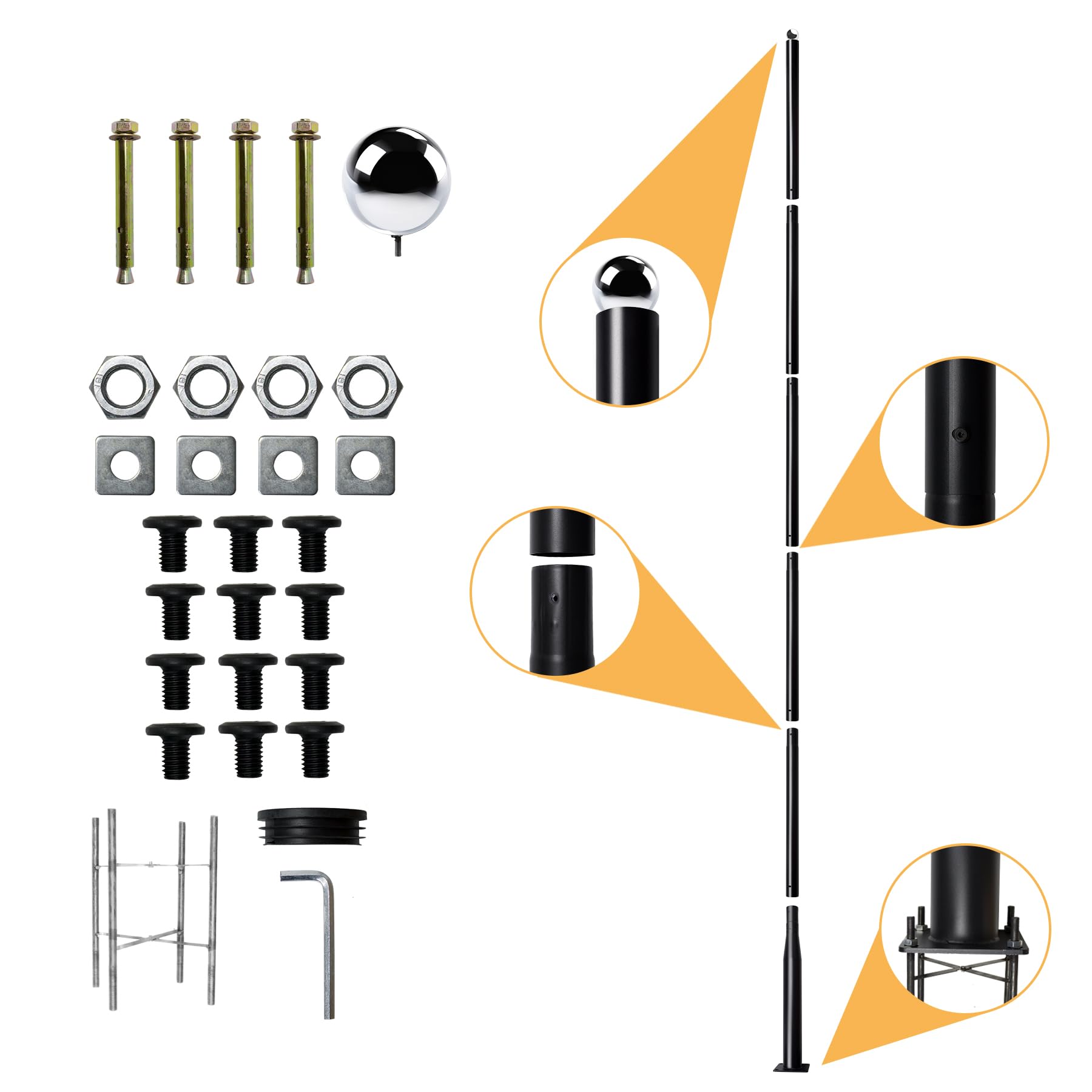 Adjustable and Easy Installation: With its split assembly design, consisting of three sections, our street light pole offers multiple height adjustments for your convenience. The split rod design also makes installation quick and easy. Simply assemble each section with screws and connect the pole base to the rebar cage for a sturdy and reliable installation.