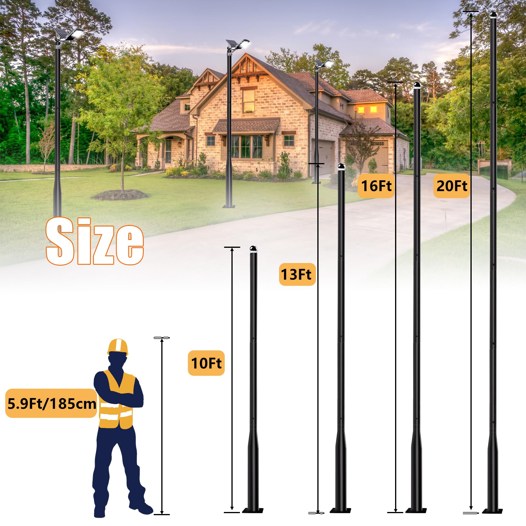 Versatile Usage: Designed primarily for street lights, our 10Ft/13Ft/16Ft Tall Street Light Pole for Outside can be used in various applications. From garden lights to sunshade sails, this pole accommodates different lighting fixtures, giving you flexibility in your outdoor lighting setup. It can also be used for flags, cameras, and other items, making it a versatile choice for any outdoor space.