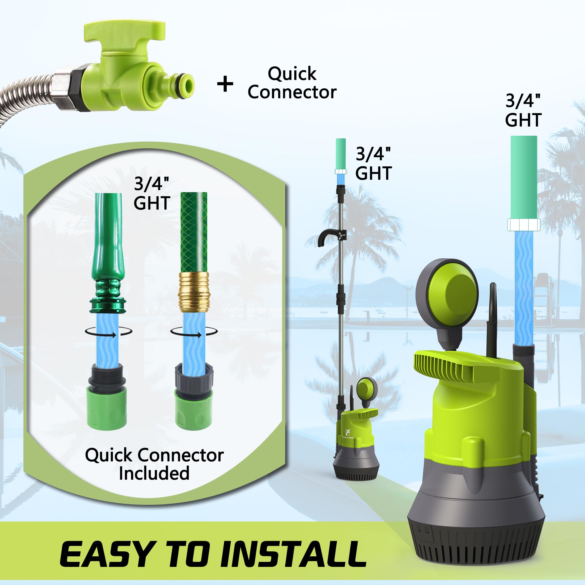 SAFETY & RELIABLE: Full corrosion-resistant shell and environmental thermoplastic construction with thermal overload protection ensure safety and durability for household and utility applications. When the built-in thermal motor protector overheats, the sump pump will automatically switch off, and rework again after cooling down.