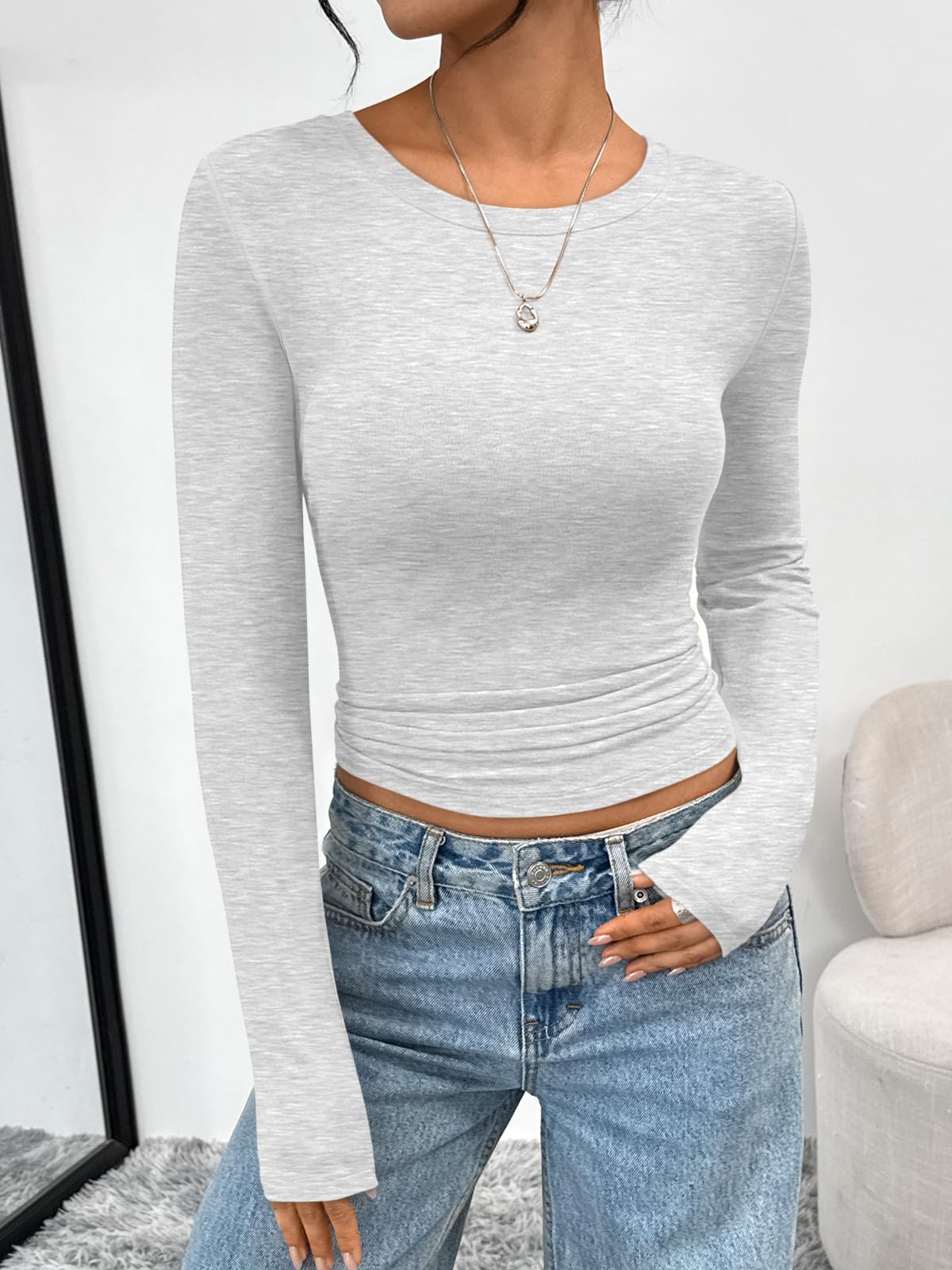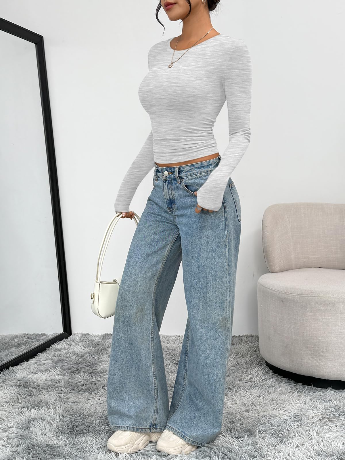 Stretch Design - Cropped and stretch fitted style,crew neck, tight underscrubs layer,you can wear it regularly or fold it up like a crop top,cute,slim fit,casual y2k style fashion 2025