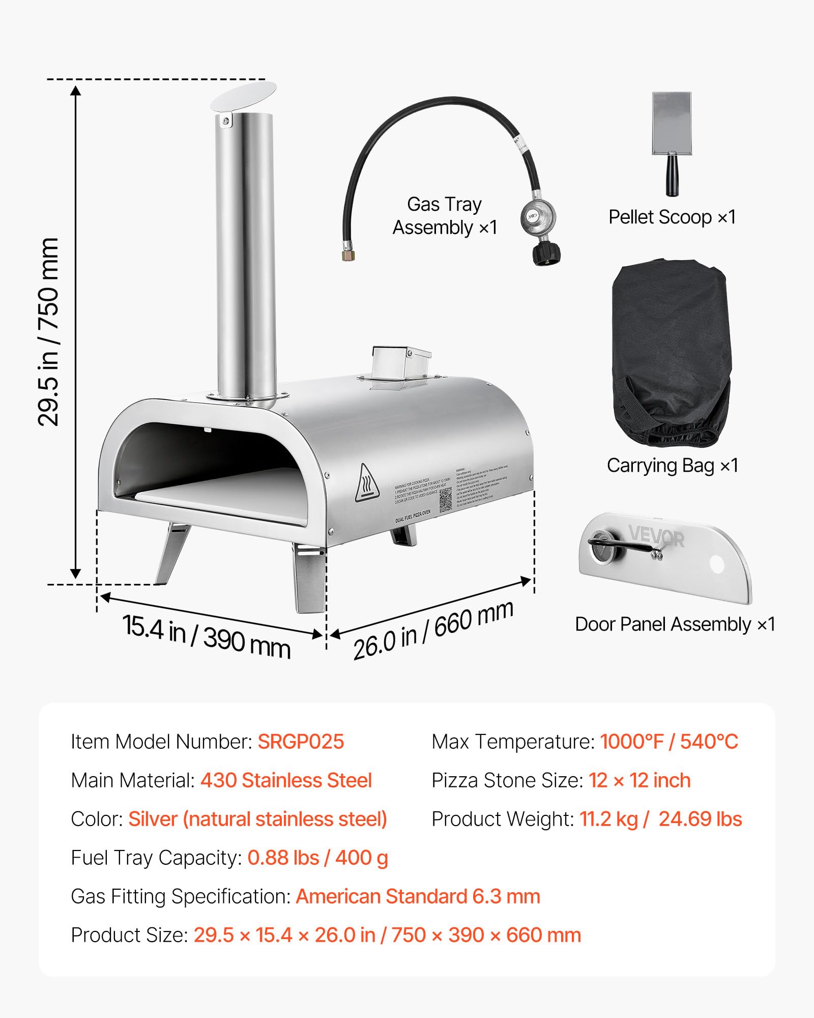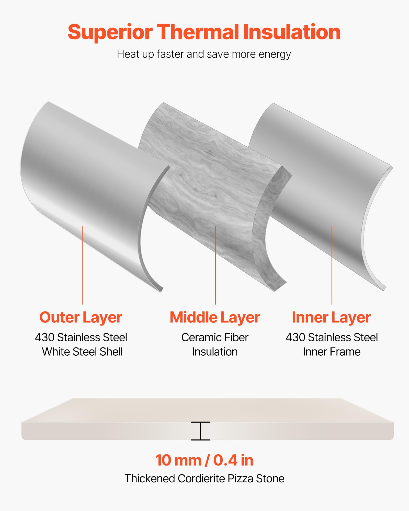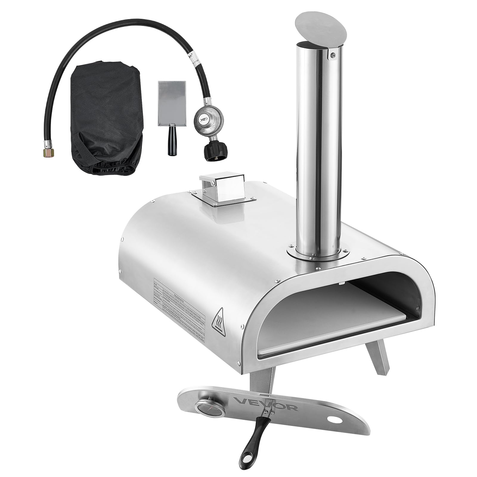 Durable Construction: This multi-fuel pizza oven withstands outdoor conditions and frequent use. Adopted a 3-layer construction, promoting efficient heat circulation. Featuring a 430 stainless steel shell, and thick insulation cotton, it ensures durability and excellent heat retention