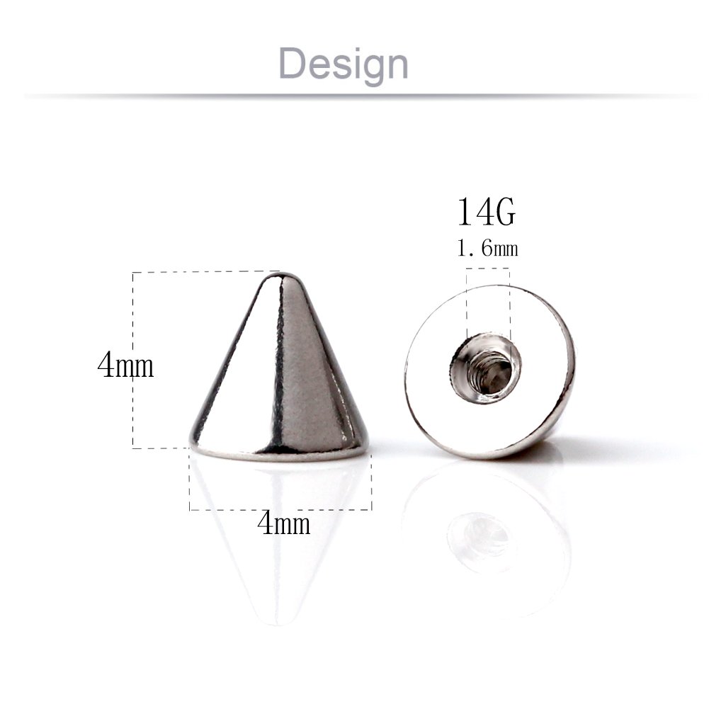 10PCS 14G or 16G Externally Threaded Replacement Ends for Body Piercing Barbells. Our replacement end spikes have different GAUGE and SIZE available,please choose the one fit you.