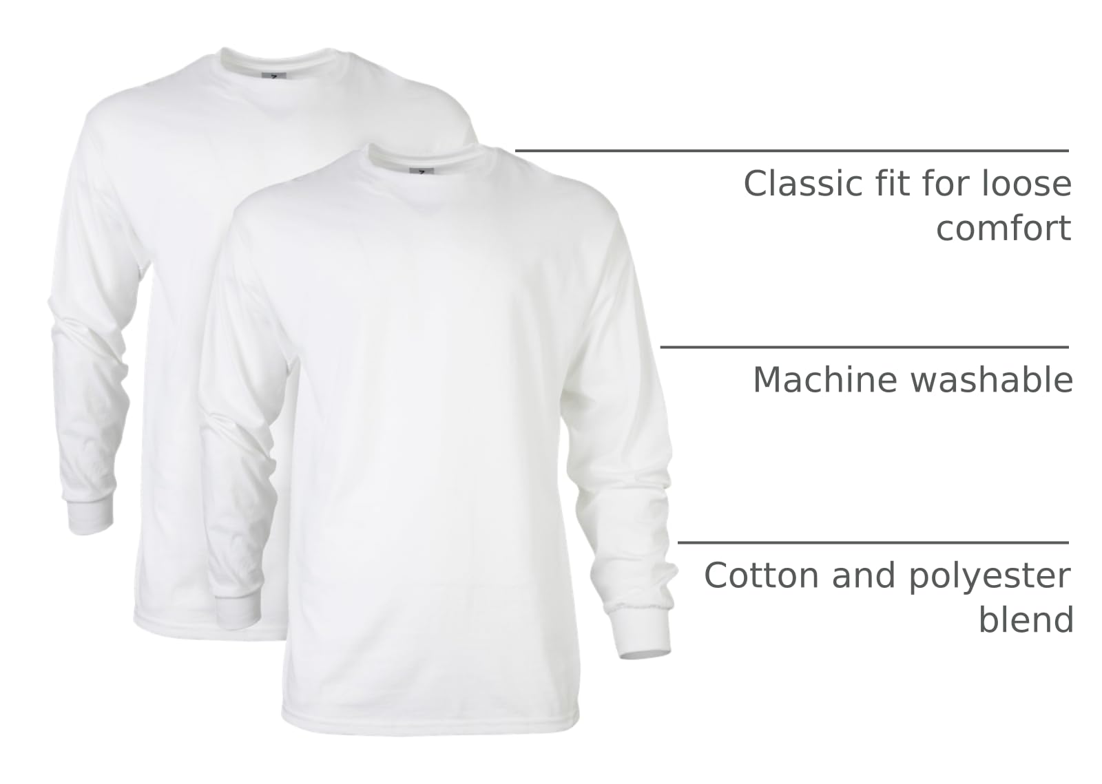 Description What makes the Gildan Ultra Cotton Adult Long Sleeve T-Shirt the style you want to wear every day? Itβs heavyweight fabric, classic fit and taped neck and shoulders are just a few of the reasons. It can be decorated with screen printing, DTG, discharge, heat transfers, dye sublimation and discharge.