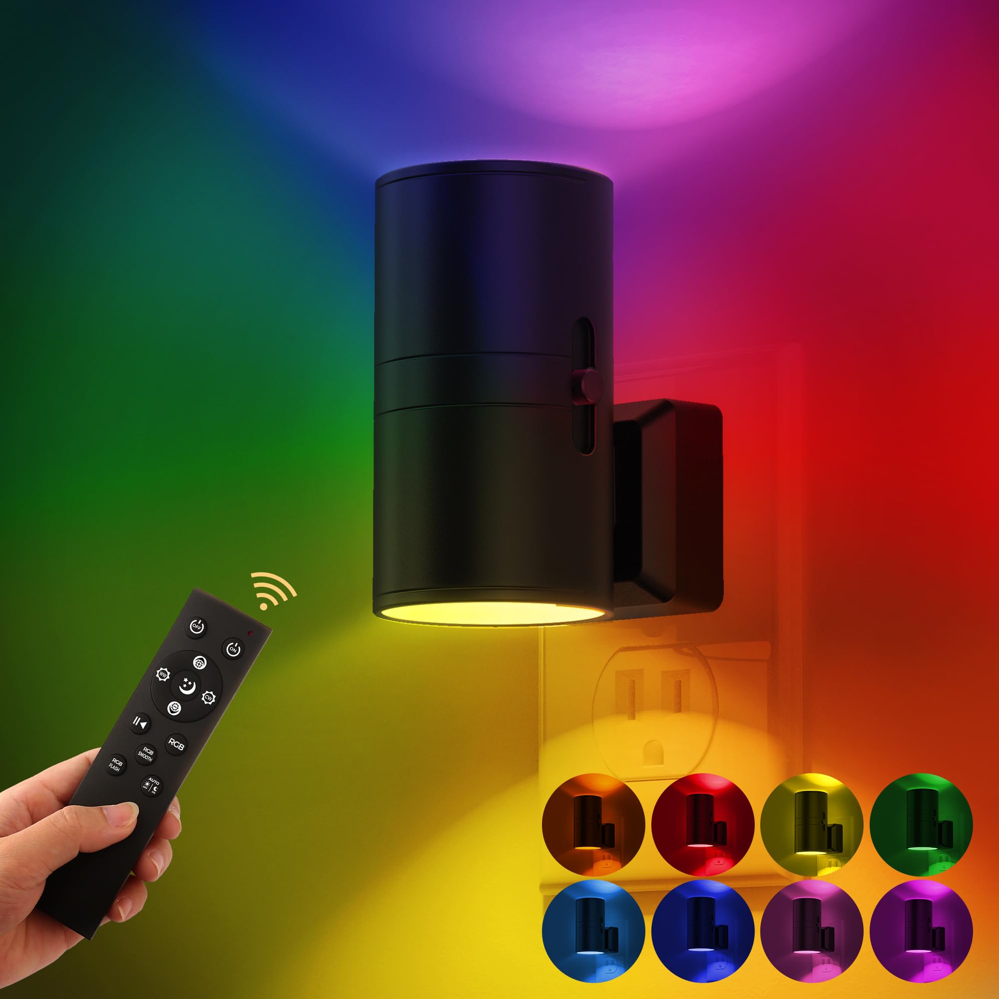 Remote Control Night Light: This plug in night light comes with a remote control. The remote control has a variety of functions including power on/off, RGB, RGB smooth, RGB flash, Brightness+/-, etc., which can help you control it easily.