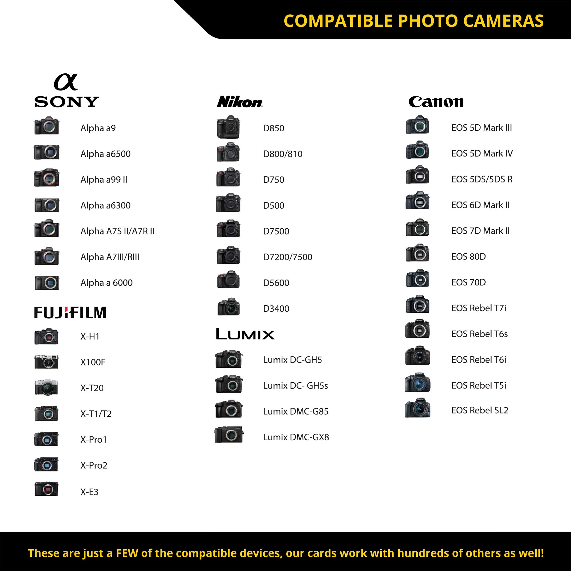 COMPATIBILITY: Canon, Sony, Nikon, Olympus, Panasonic, Fuji, Samsung