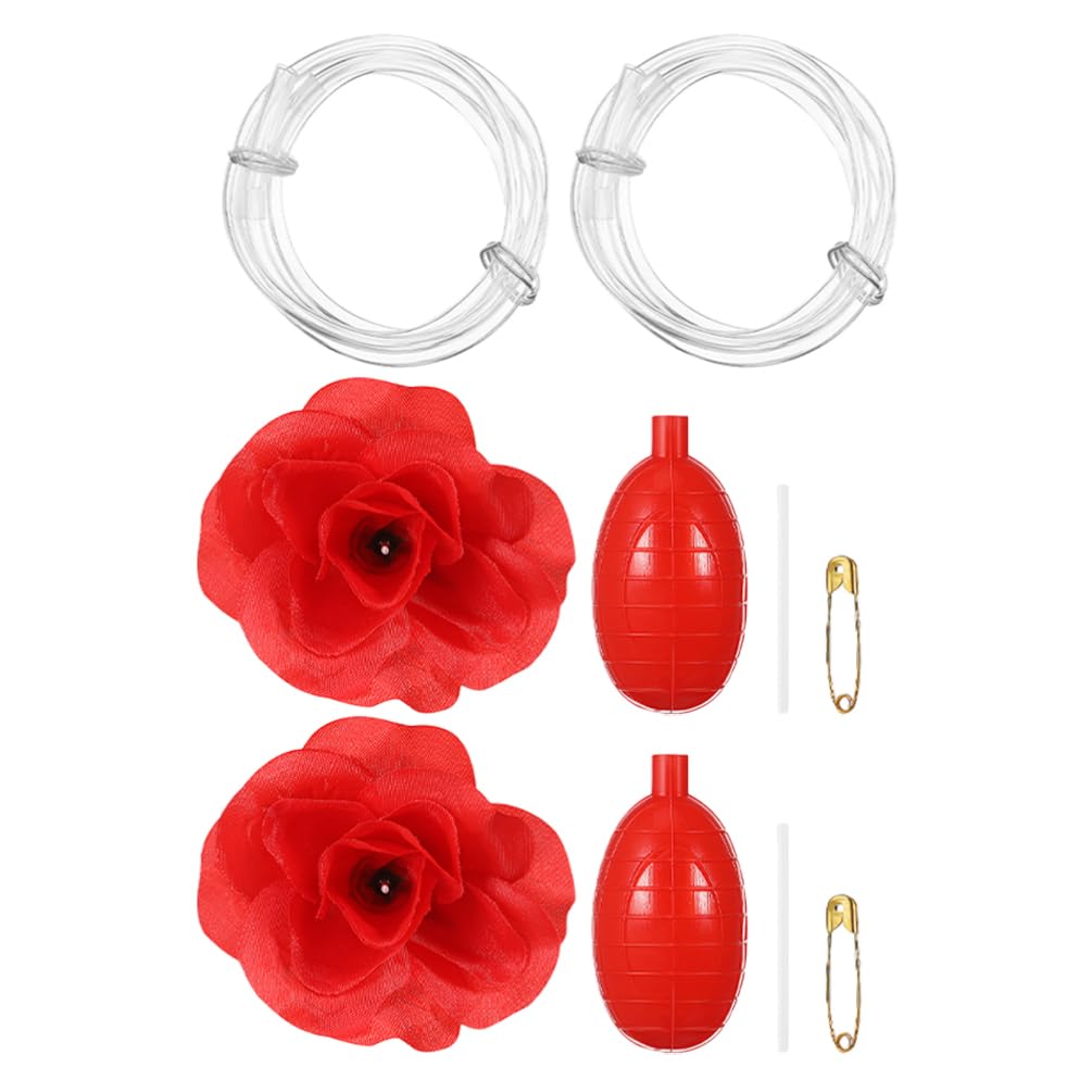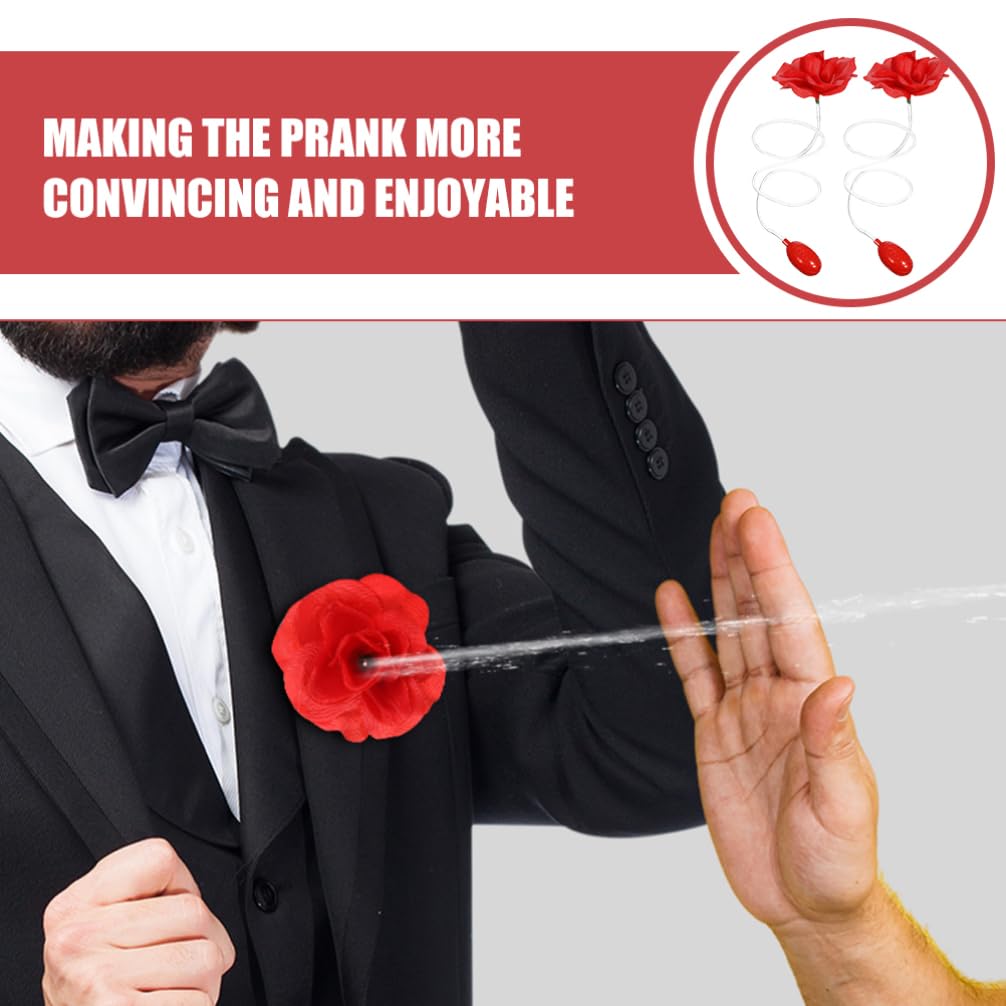 Reusable and Lightweight: Made from plastic materials, these prank roses can be refilled and reused multiple times. The lightweight corsage pin design allows easy wearing on clothing, costumes, or party outfits