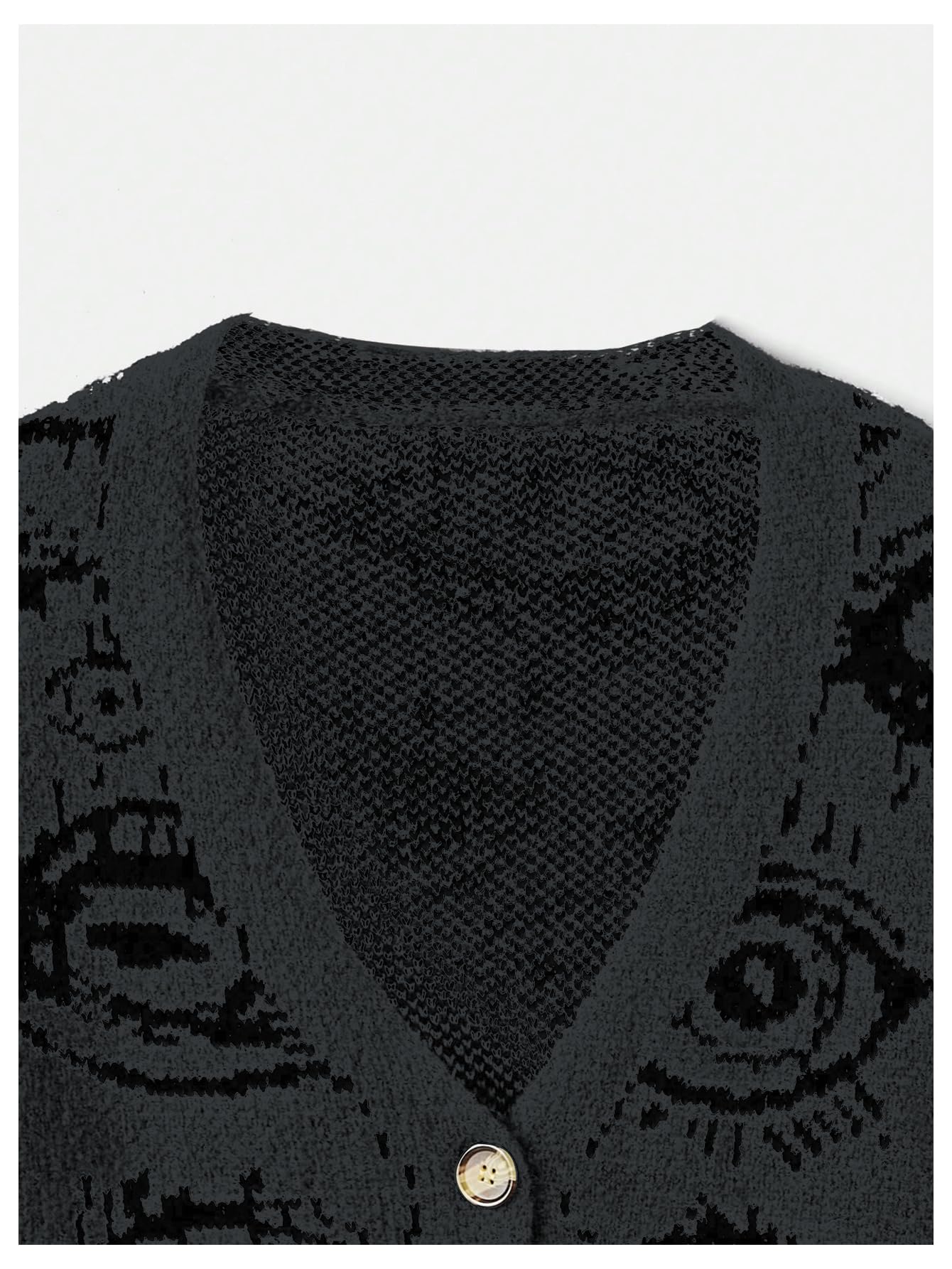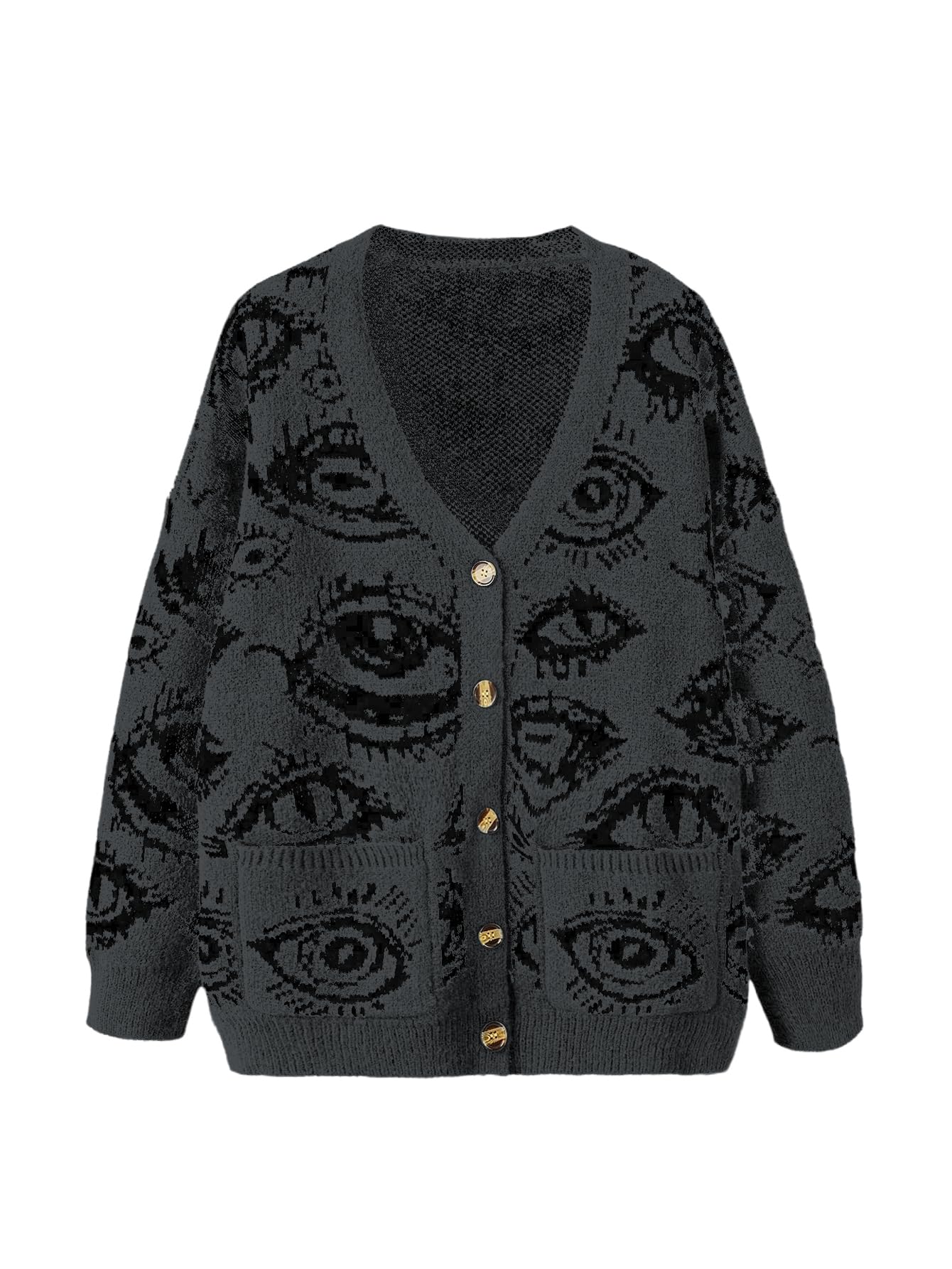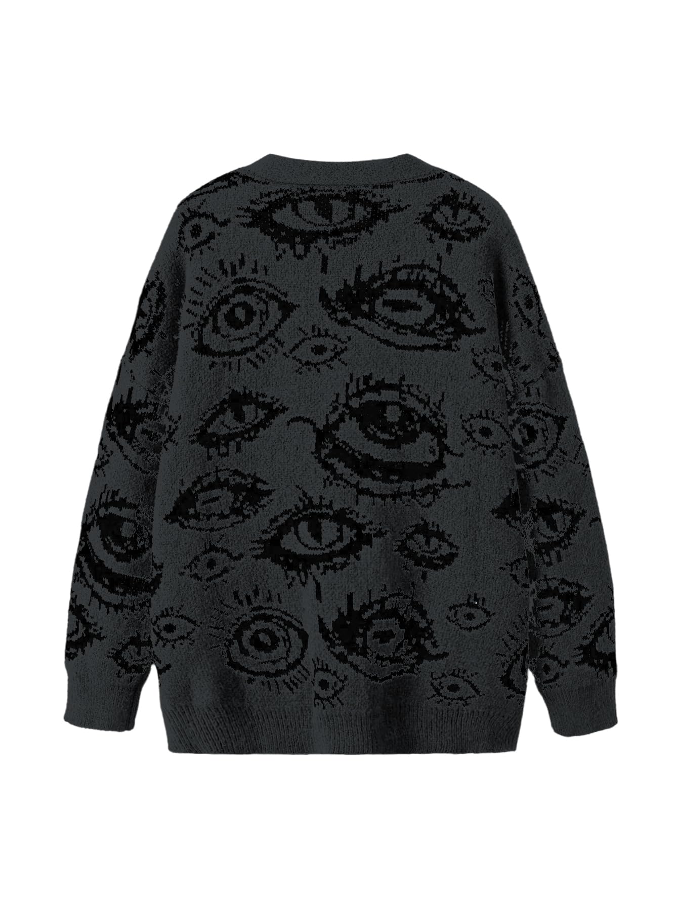 Features: button down cardigan for women, grunge punk sweater cardigan, eye print, goth sweater top, long sleeve, v neck