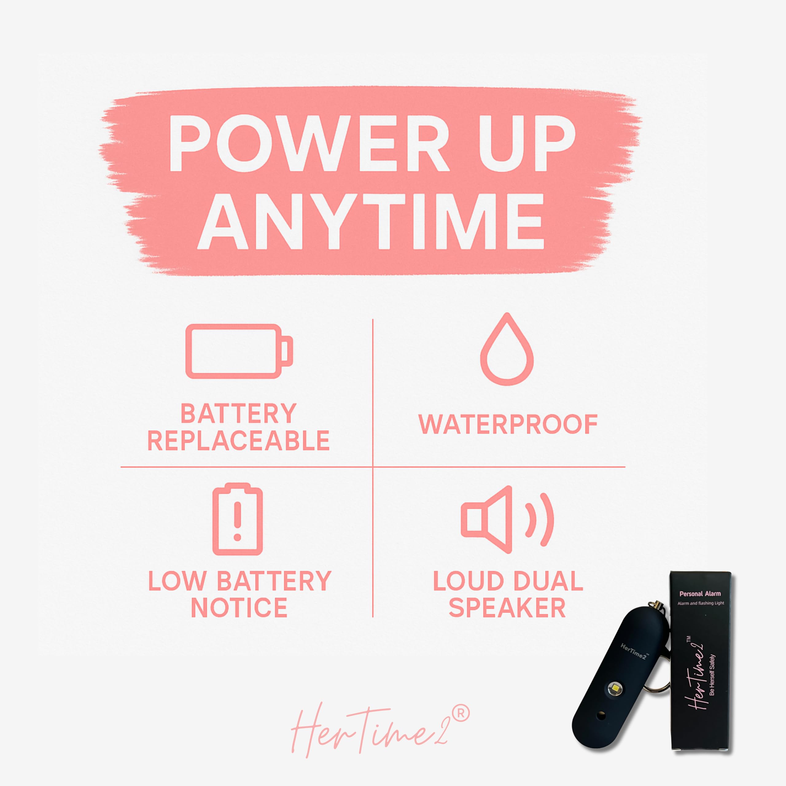 LOUD SIREN + STROBE LIGHT – A 130dB siren and flashing strobe work together to deter threats and signal for help — even in low light or loud surroundings.