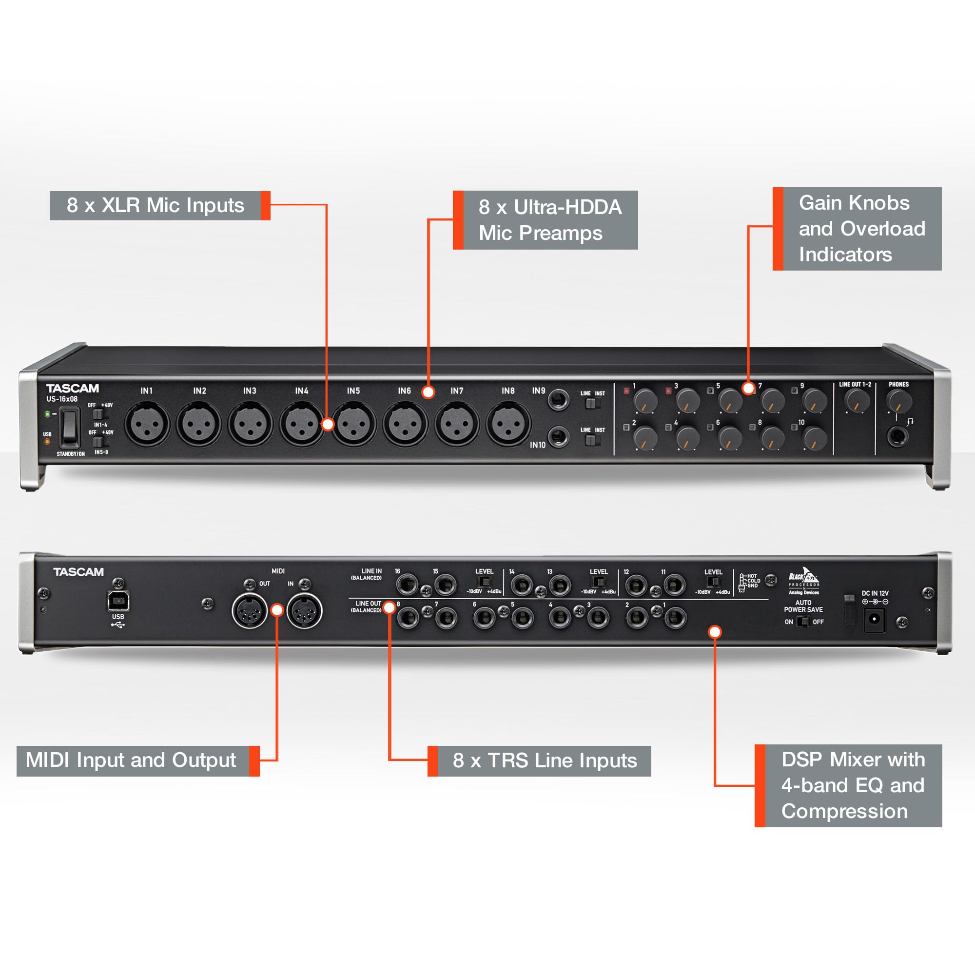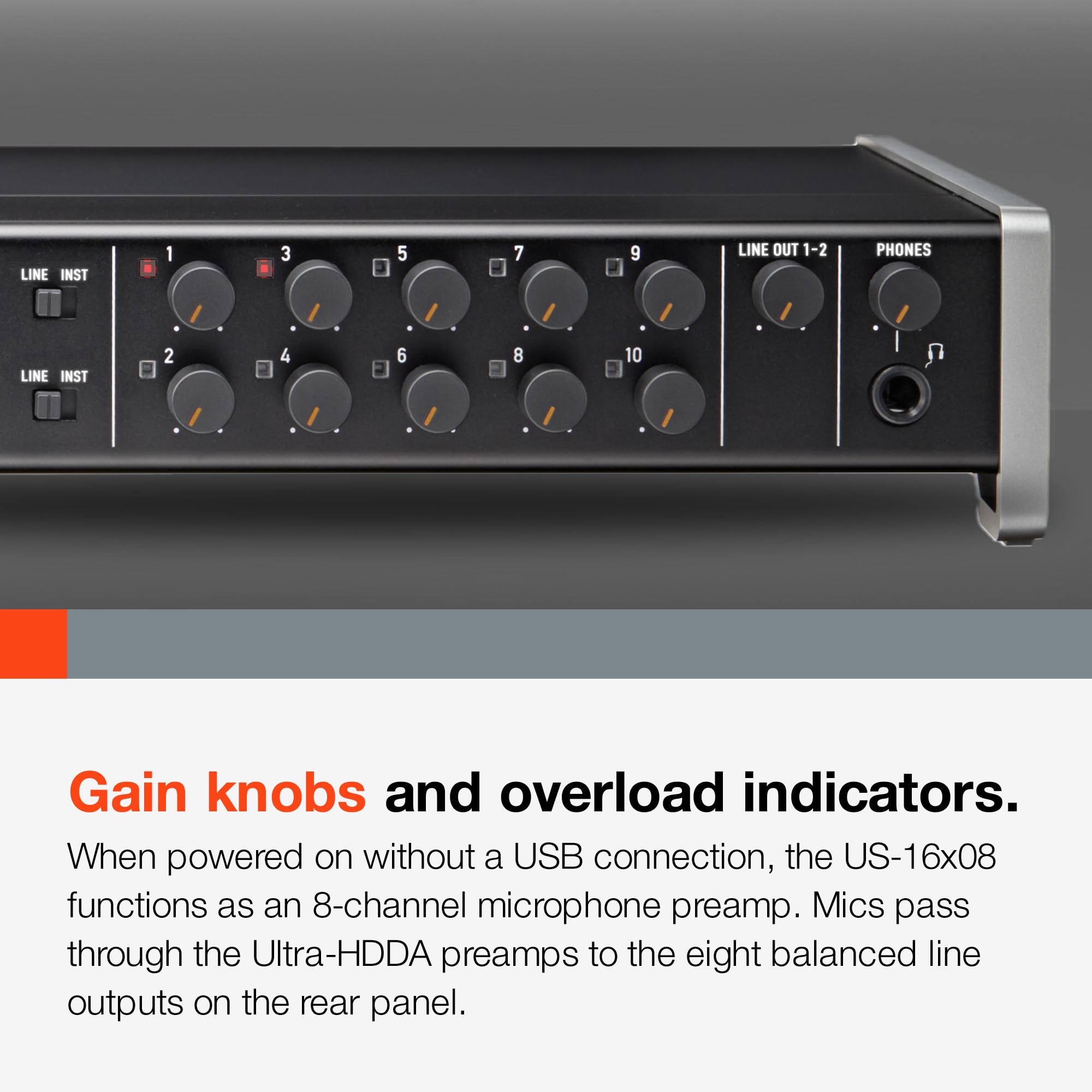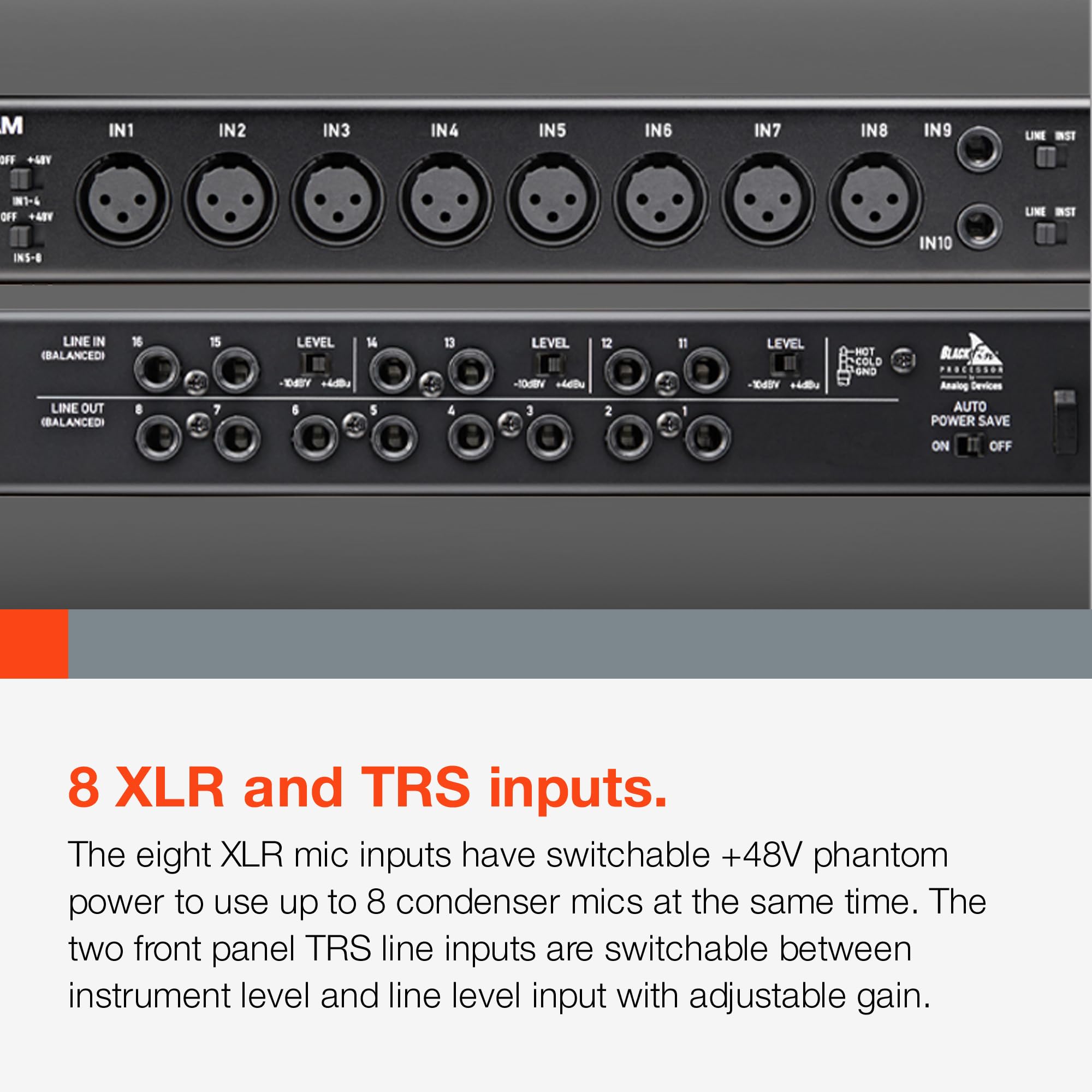 Captures 16 mic and line inputs to your computer with clear sound quality and advanced features to manage big sessions