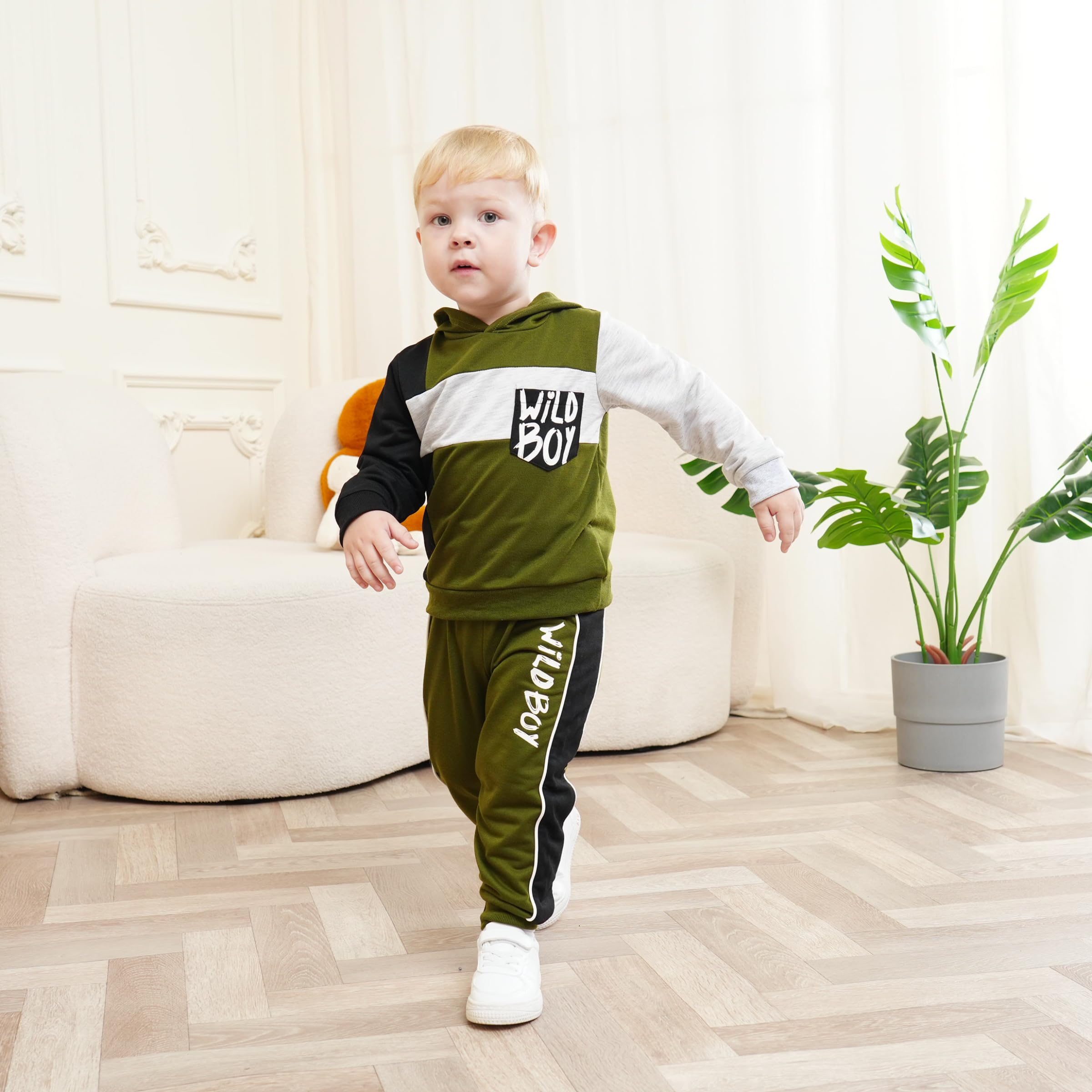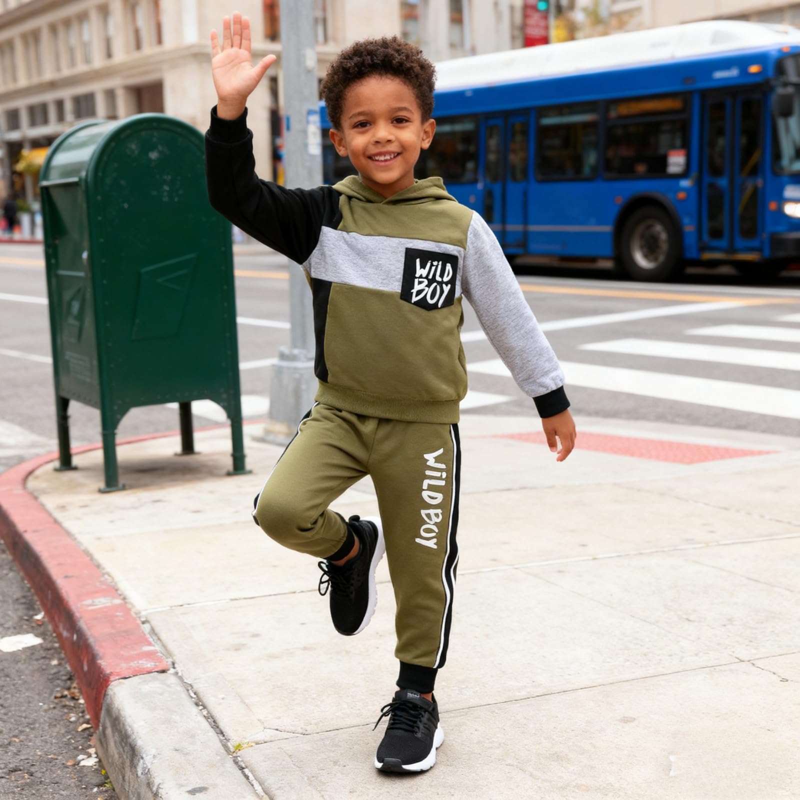 Featuring a stylish WILD BOY print design, this Colorblock Hoodies + Pants Fall Winter Outfits Set is perfect for little boys aged 2-6 years old. It exudes a cool and trendy vibe that will make your child stand out in the crowd