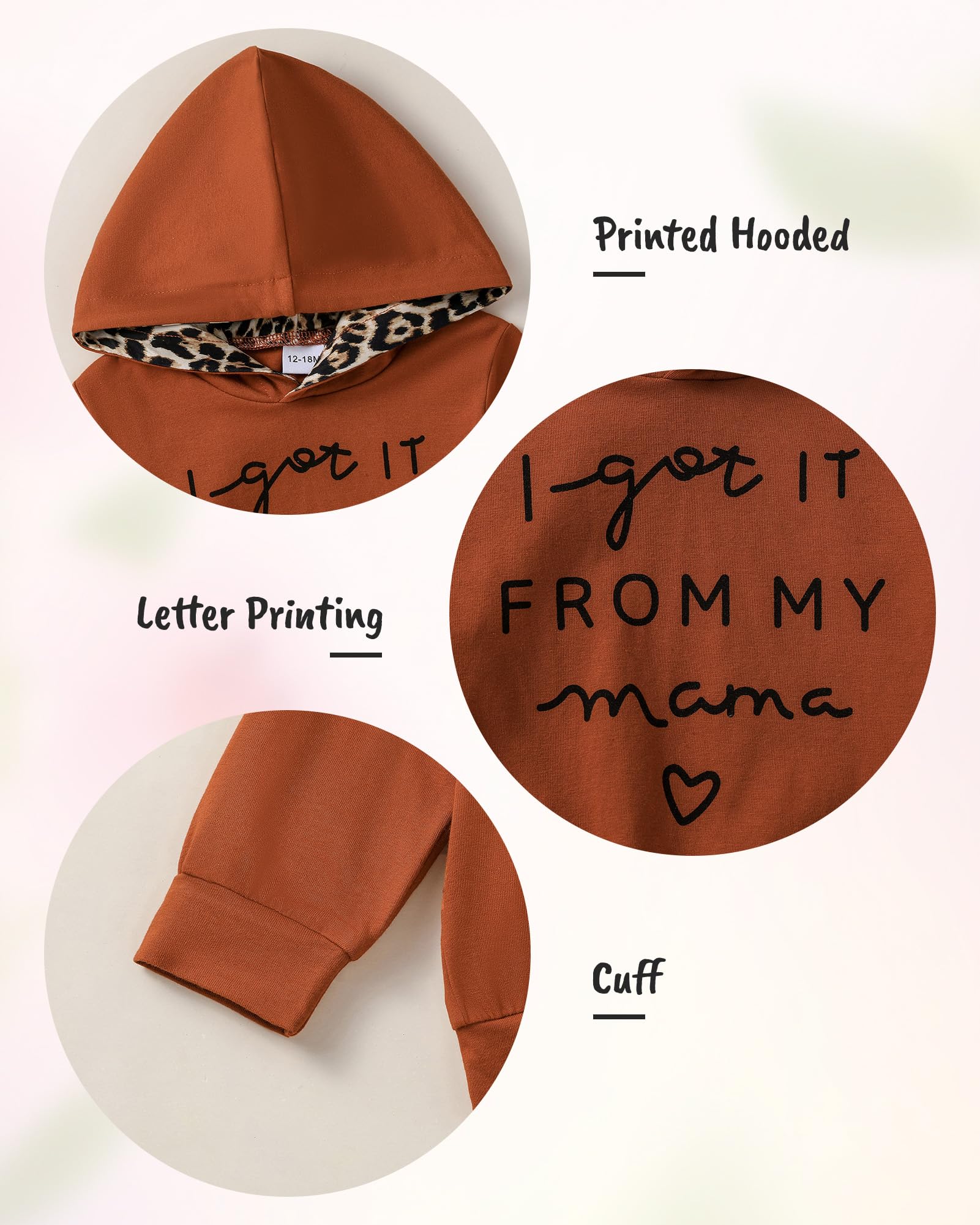 Design: Toddler girl Long sleeve letters printed fall sweatshirts, matching with elastic waist popular floral pants, the dress has a patchwork floral pattern on the hood to make your child look more fashionable.