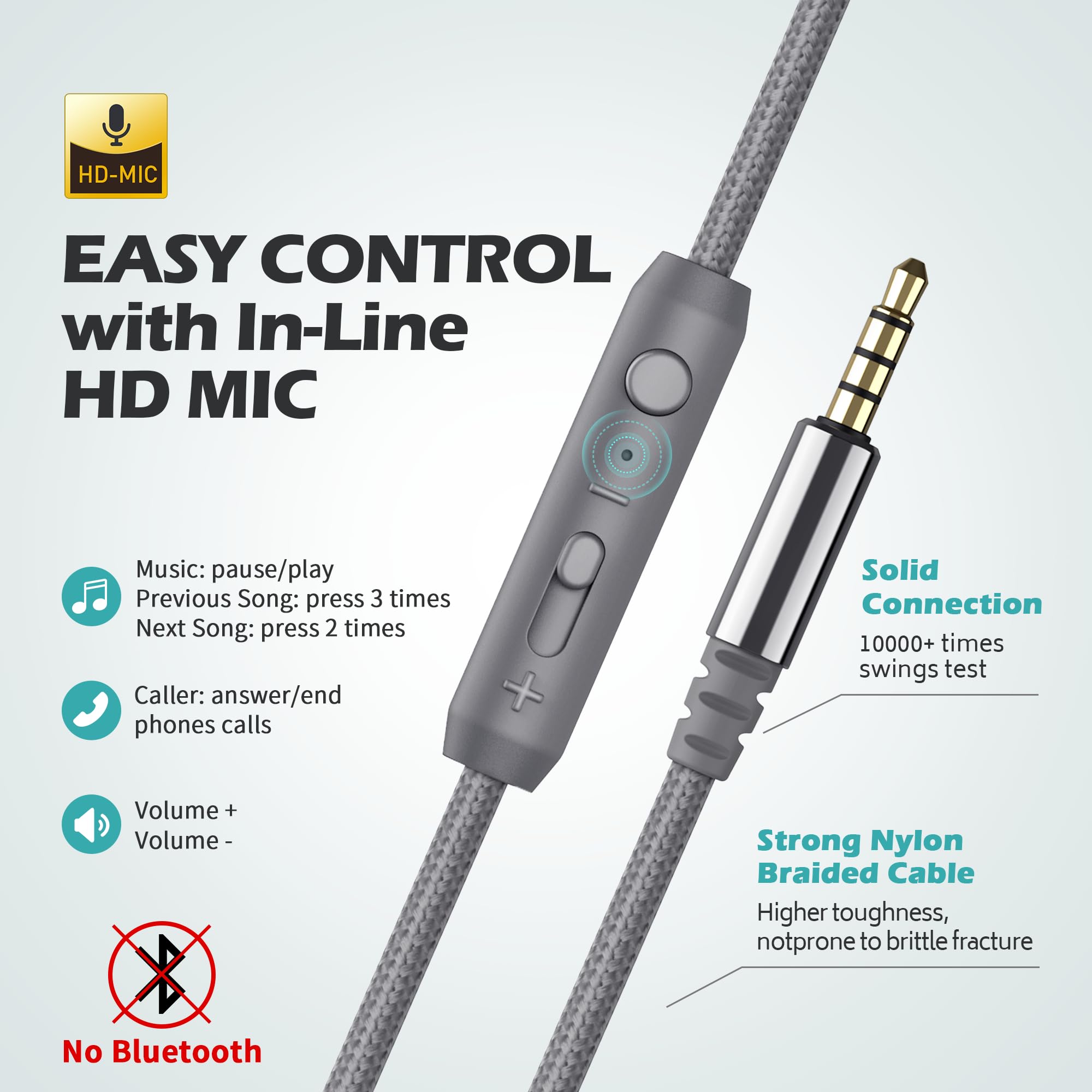 Widely Compatible: with a flexible and durable 59 inches braided cord and sturdy 3.5mm stereo Plug. Will not kink, twist or break under normal use. Use with all your favorite devices like cellphones, laptop, computer, Chromebook, MP3, MP4 and other Audio devices