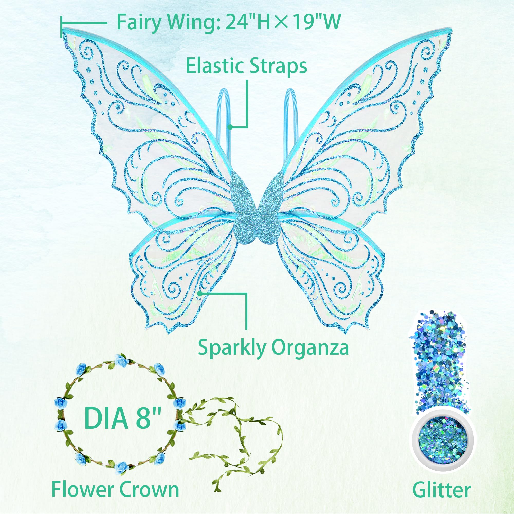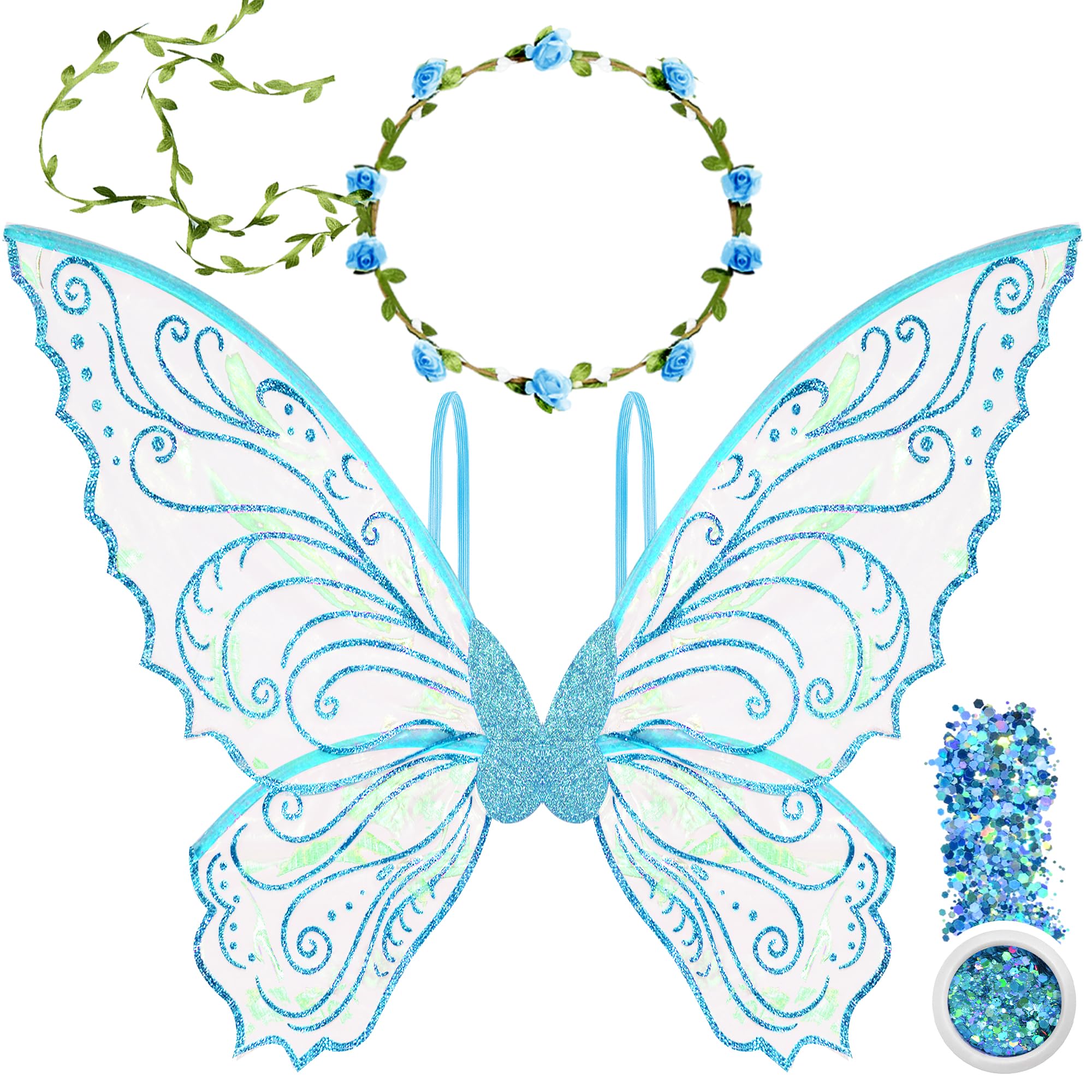 【Suitable for Various Occasions】- Butterfly Wings are perfect for Halloween dress up party, ladybirds and butterflies theme, birthday dress up, dance recital, school play, beach dress up, make you look like a butterfly, or as accessories for the flower girls in your wedding. Blue fairy wings costume's special design creates unique atmosphere whether you're pairing with fairy dresses, butterfly costumes, or witch outfits