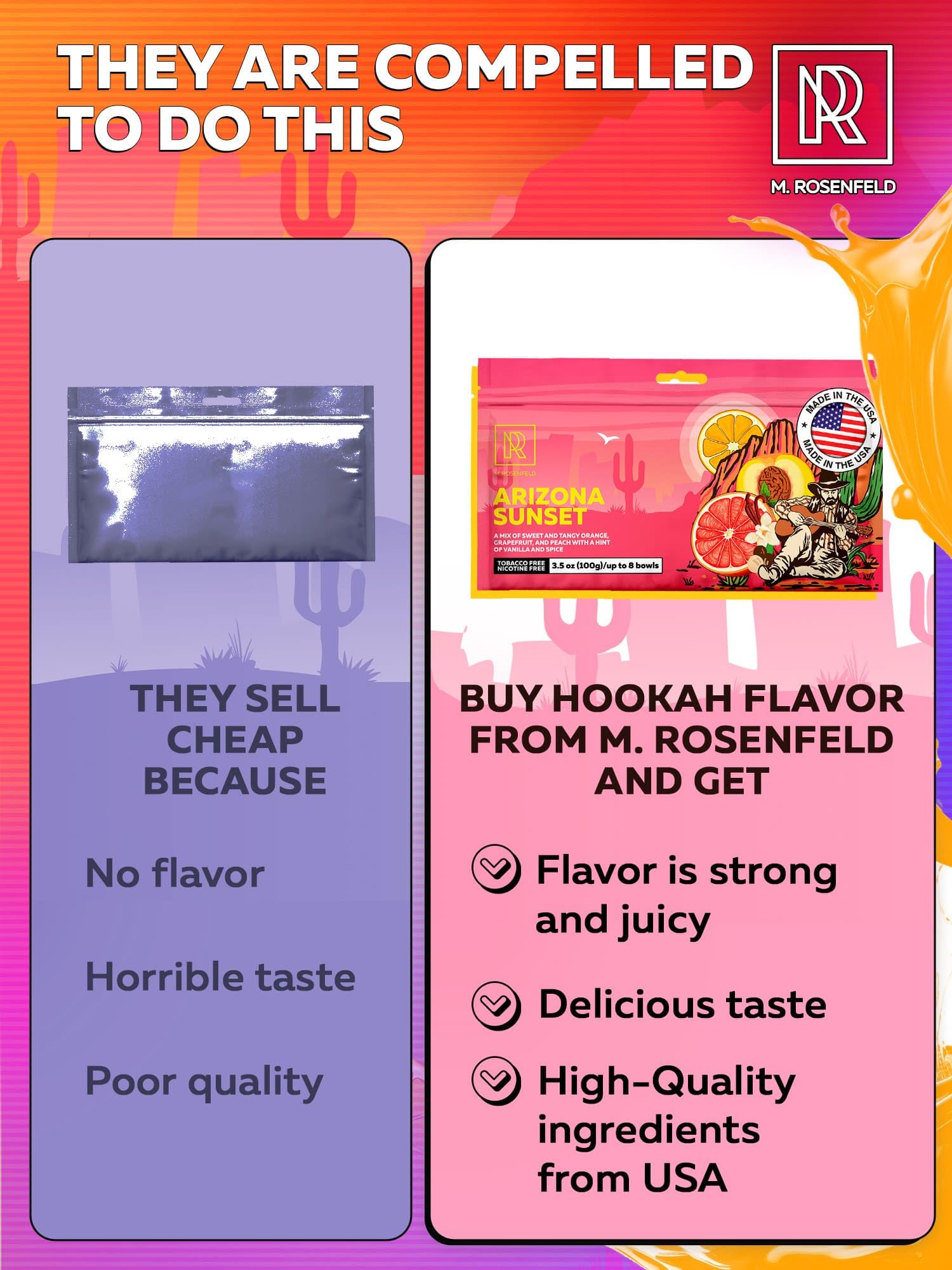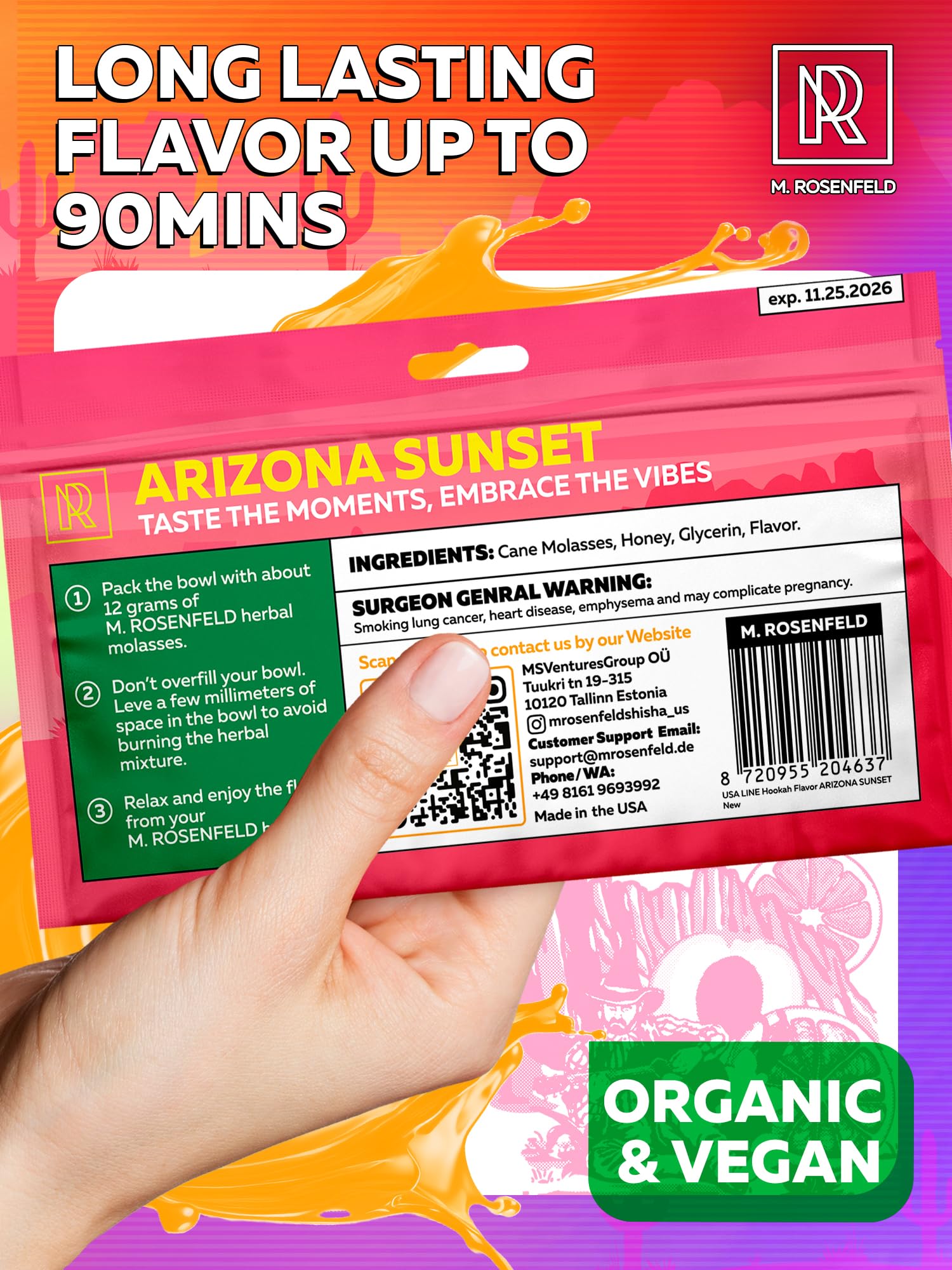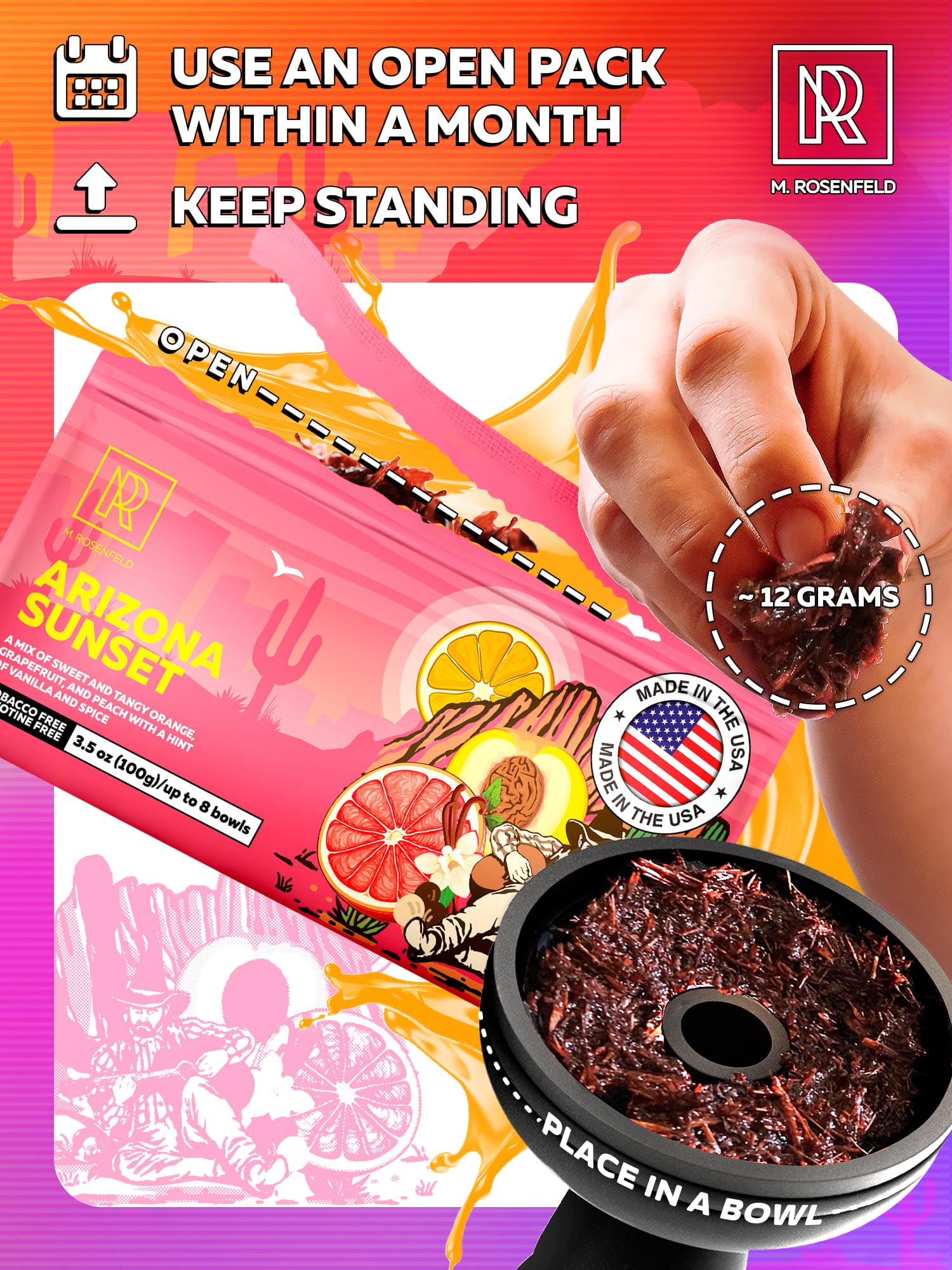PREMIUM QUALITY – The "Arizona Sunset" non tobacco hookah flavor is crafted with high-quality hookah ingredients: molasses, honey, glycerin and shisha flavors.