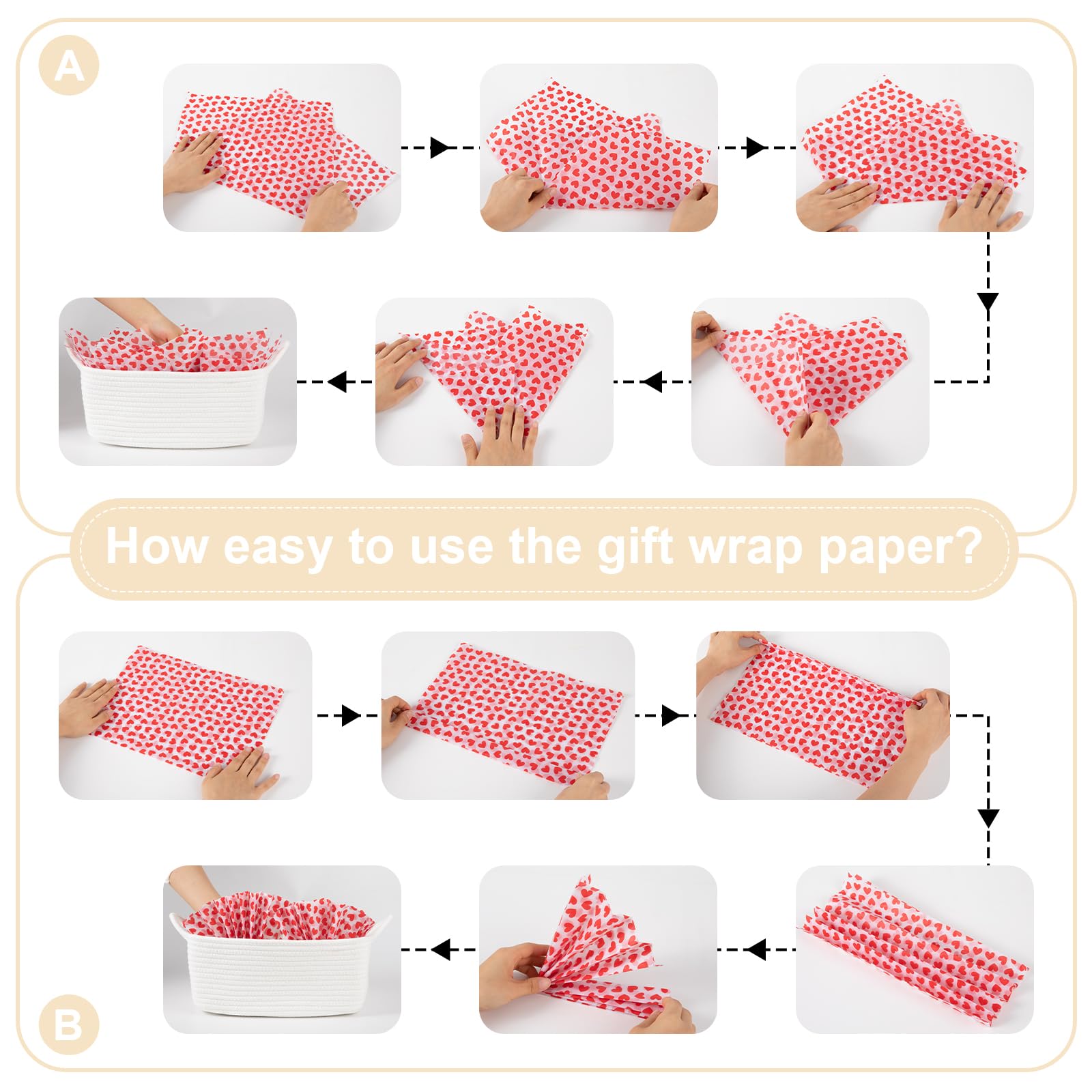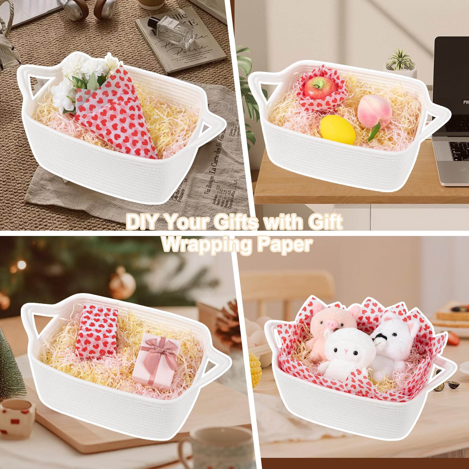 Convenient recovery process: The small baskets for gifts is folded when arriving. After receiving the basket, you can easily open it and place towels or clothes to regain its shape. If you have an iron at home, ironing can also help the cute storage basket recover to its best condition faster
