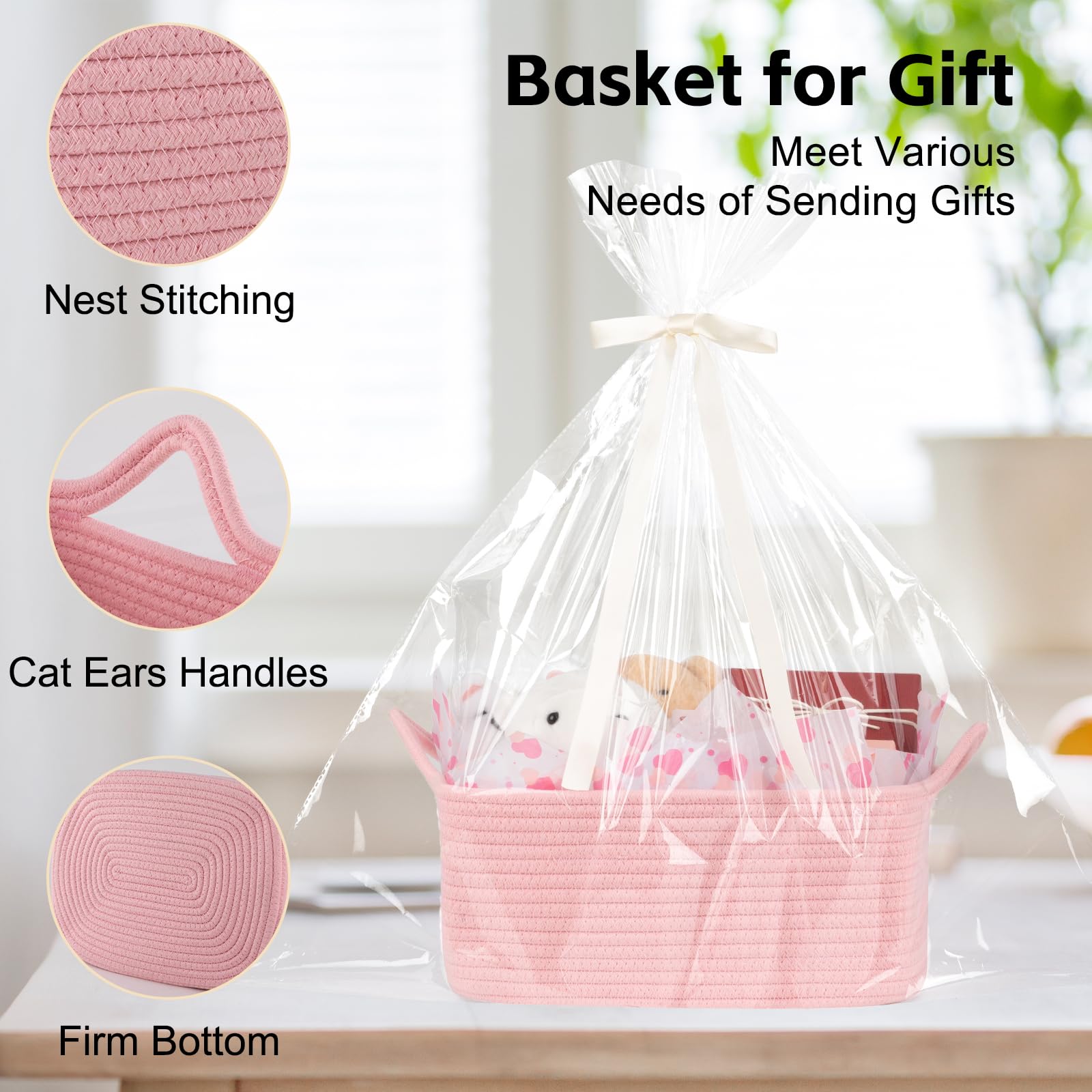 Cute and practical handle: Each baby basket has uniquely cat ear handles, which are cute and practical. The handles are on both sides of the basket for easy grip and movement. The connection between the handle and the small basket is tightly sewn together, so you don't have to worry about the basket breaking when lifting heavy objects
