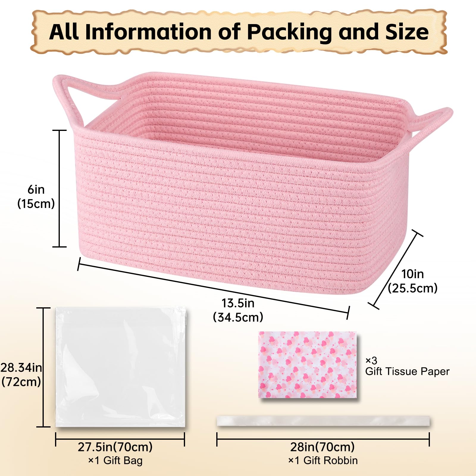 Safe Material: The basket is 13.5*10*6in and made of 100% pure cotton material, no chemical material, no odor, soft and skin friendly. It is no sharp edges that may scratch the floor, especially suitable for children and pets. We are passionate about providing you and your family with a healthy and clean home atmosphere