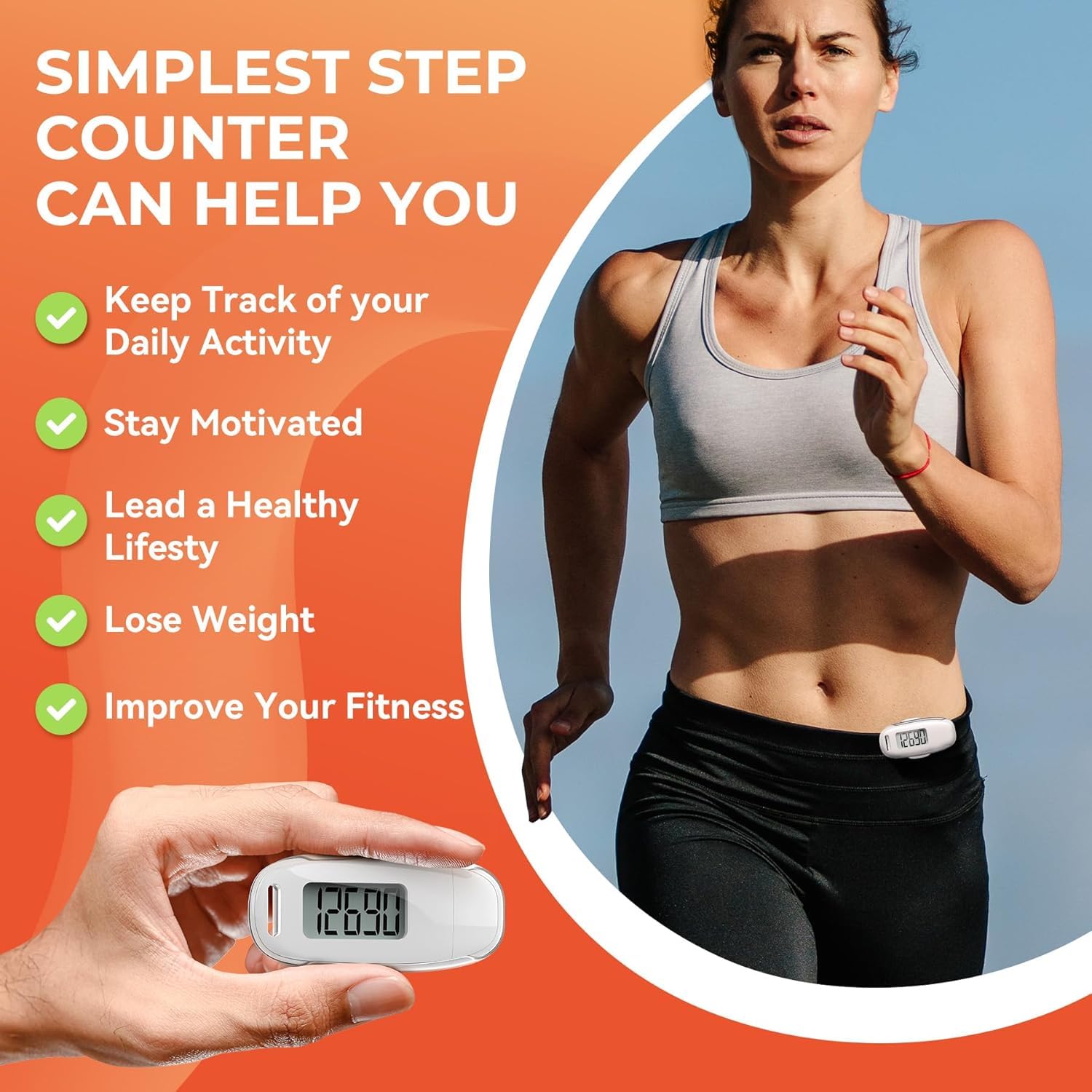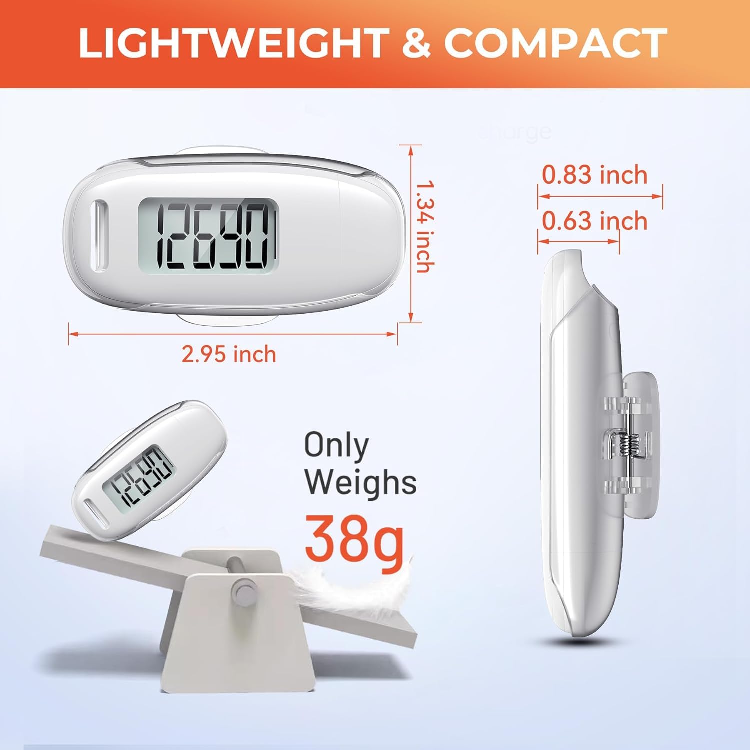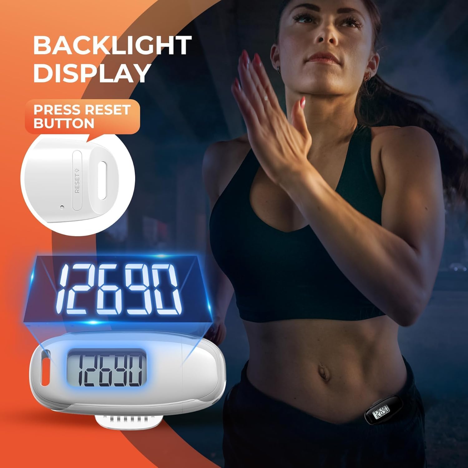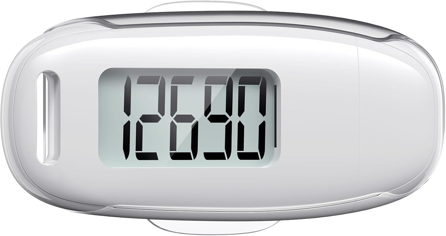 Portability: This 3D white pedometer is small and compact with a detachable clip and lanyard. You can easily clip it to your collar, shoes, waist, or even put it inside your pocket, purse, or wear it around your neck.It also features a backlight that turns on for three seconds when you press the reset button