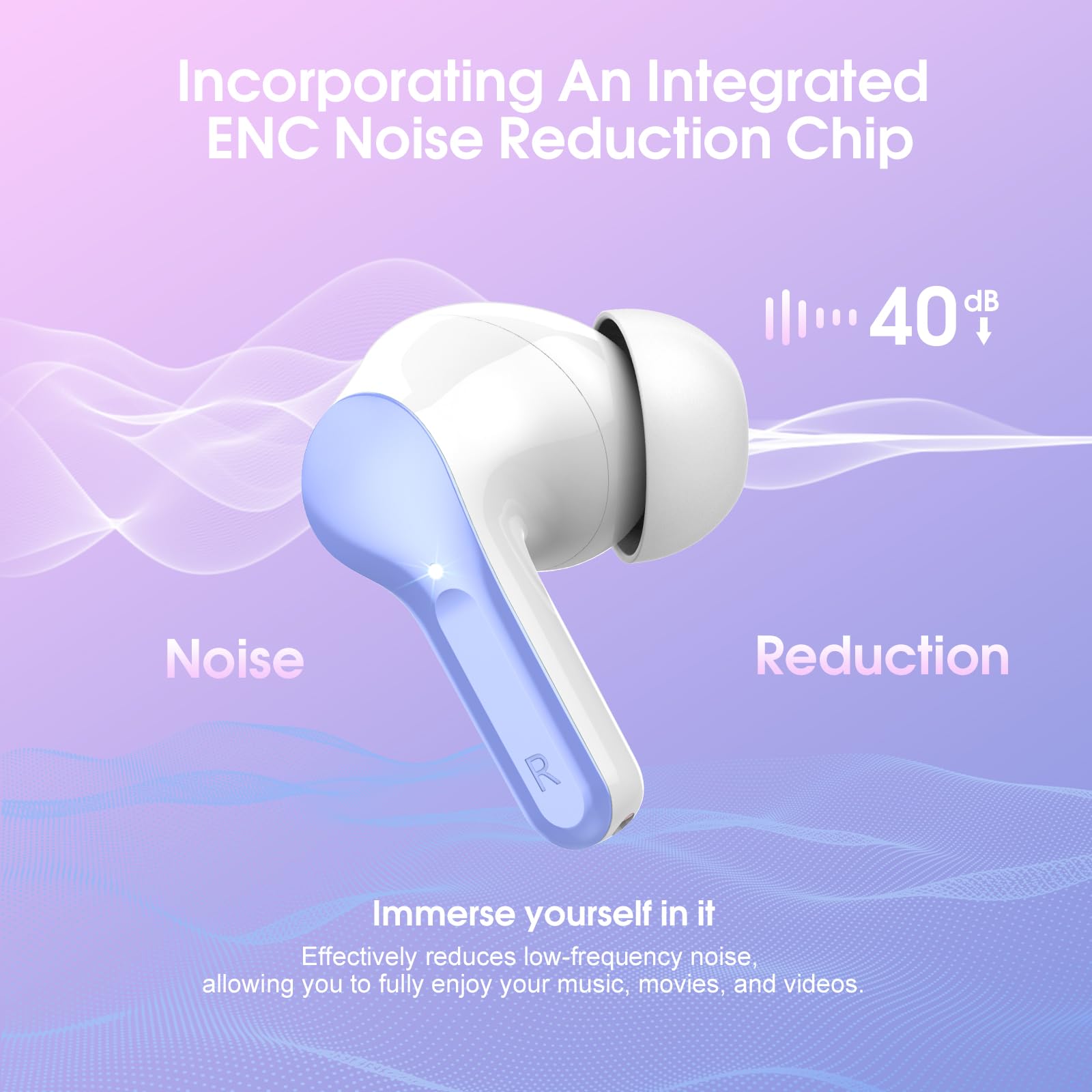 Clear call experience: This noise cancelling earbuds uses advanced ENC call noise reduction technology to effectively filter out more than 80% of external noise, ensuring that the other party's voice remains clear during busy commuting, work or exercise, providing you with a high-quality call experience. The Headphones equipped with 4 high-performance microphones, it can accurately capture your voice, so that the other party can always hear clearly throughout the call even in a noisy environment.