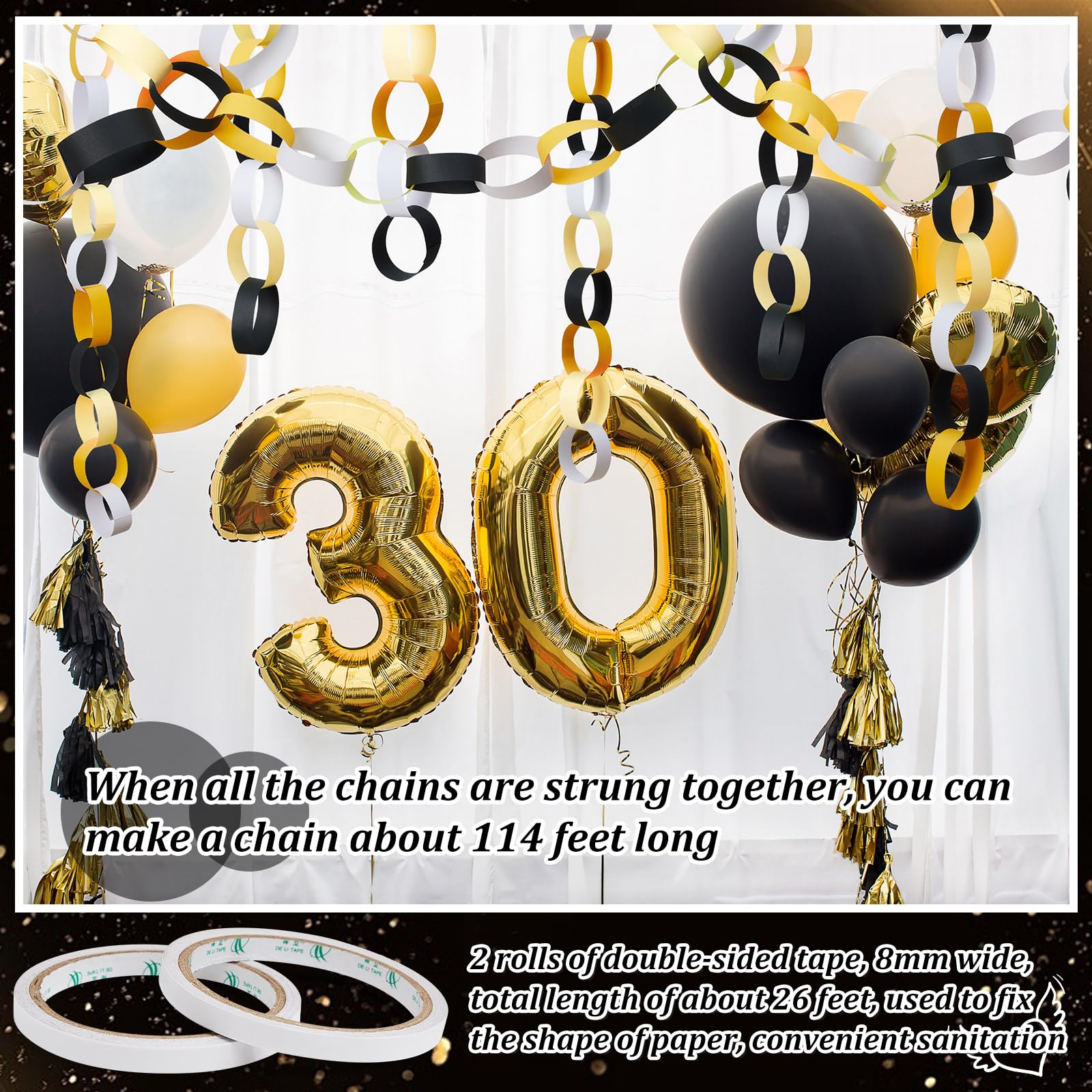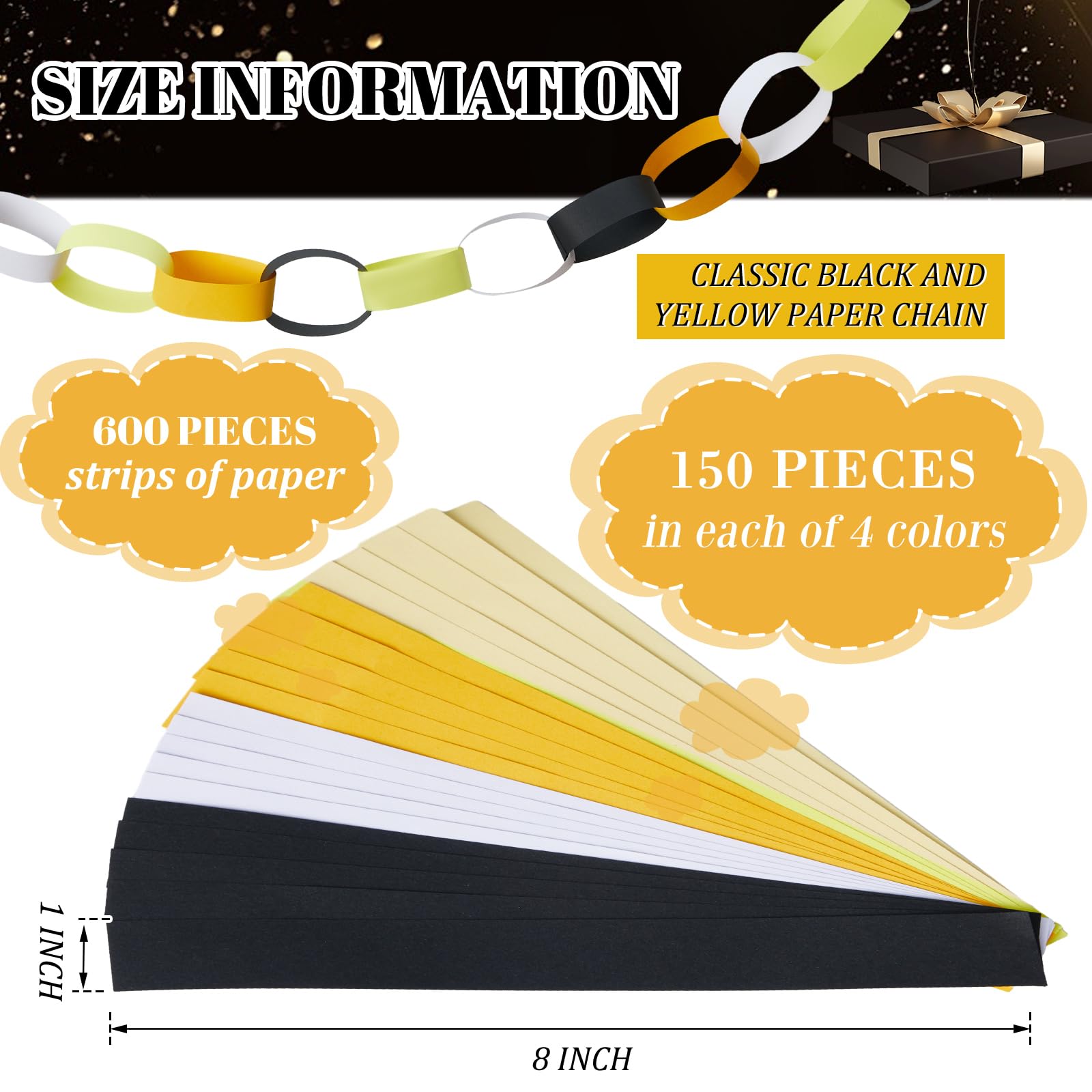 Abundantly Colorful Paper Strips: the color palette is bountiful with our 600 sheets paper chain strips, equipped with 2 rolls of double sided tapes; The abundant quantity means you can create a paper chain that can stretch up to 28 feet in total length; The multitude of colors available broadens your design spectrum, bringing out ingenuity and creativity