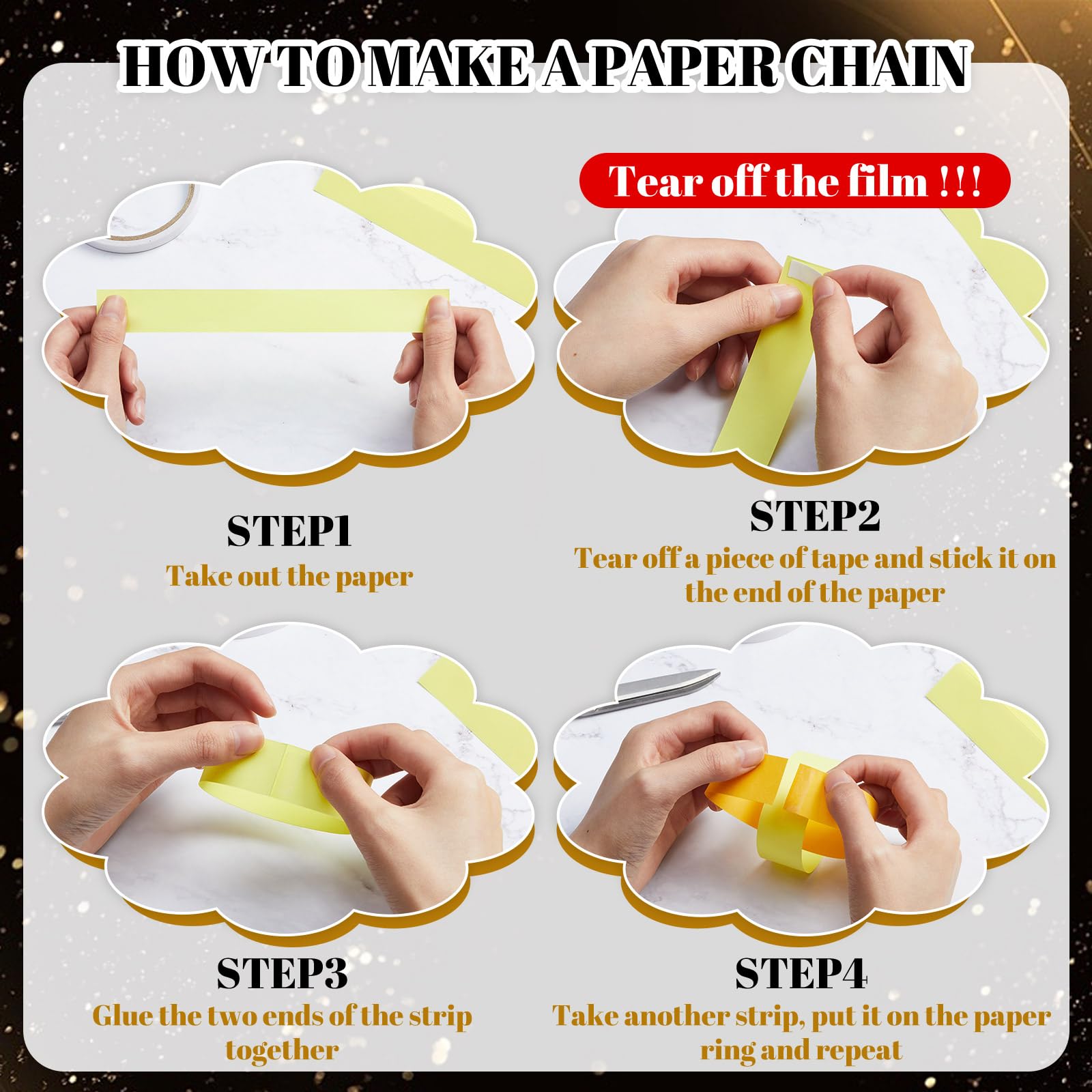 Worry Less Crafting Experience: crafting has never been easier with our DIY paper chain strips that equipped with sticky tape; You just need to stick the 2 ends of the paper together with the tape, match the color as you like, ring by ring, and you will get an exquisite handicraft, without complex or dangerous procedures; You can quickly turn your ideas into reality without the stress of sourcing for additional crafting materials