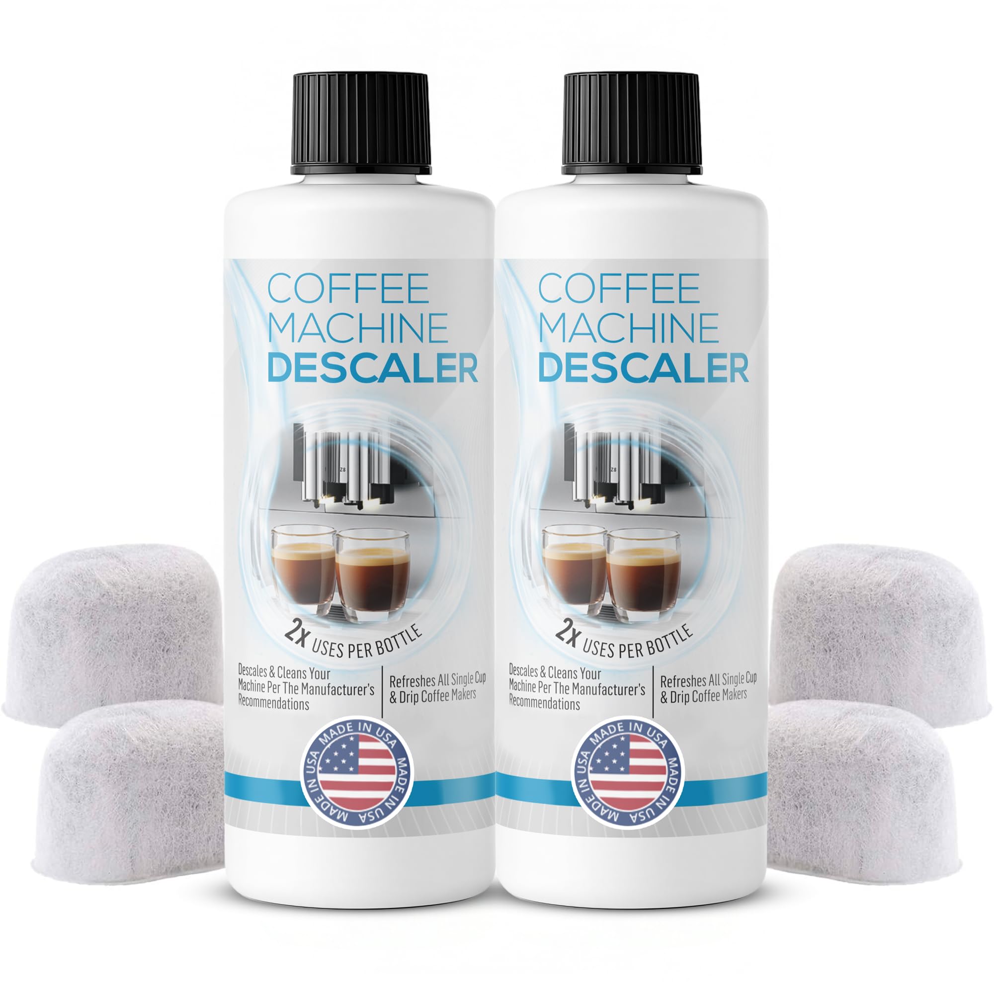 MADE IN THE USA: (Four total uses) This Keurig cleaning kit includes four concentrated uses of descaler, plus four new filters. Descale every 2-3 months, or as soon as your descale light comes on, using this Keurig cleaner and descaler kit