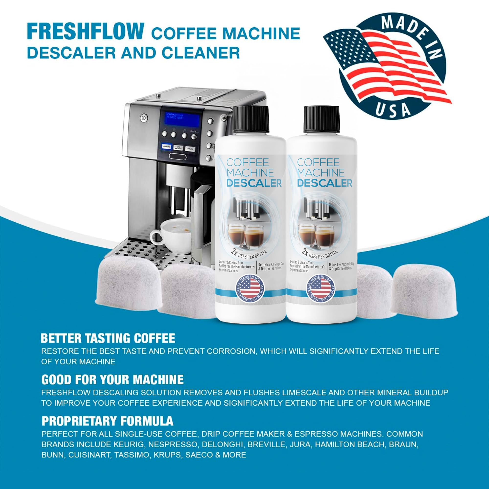PROPRIETARY FORMULA: FreshFlow is more than an ideal descaler compatible with Keurig coffee machines. It's also perfect for ALL single-use coffee, drip coffee maker & espresso machines. FreshFlowβs universal descaling solution is also compatible with most coffee/espresso machine brands including Keurig, Nespresso, Delonghi, Breville, Jura, Hamilton Beach, Braun, Bunn, Cuisinart, Tassimo, Krups, Saeco & more