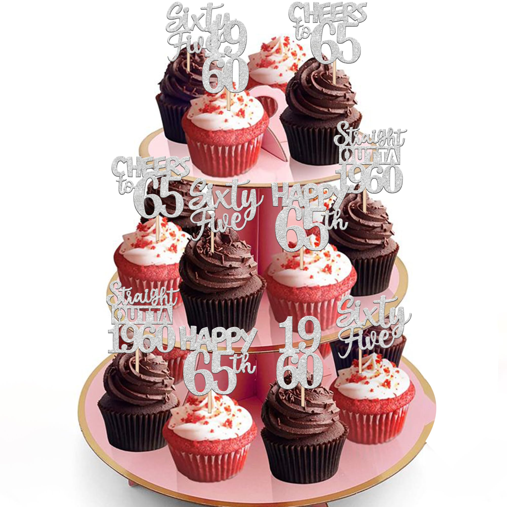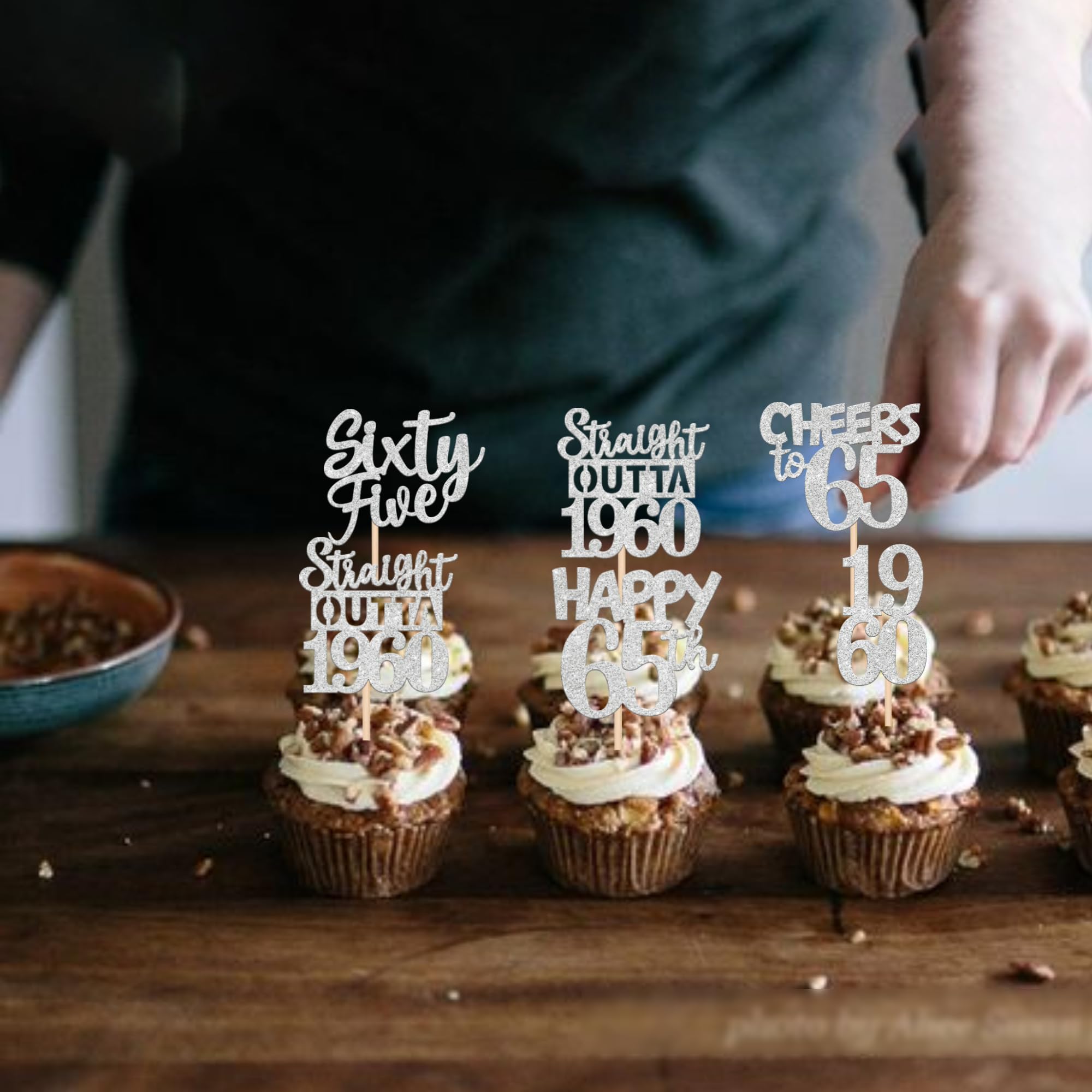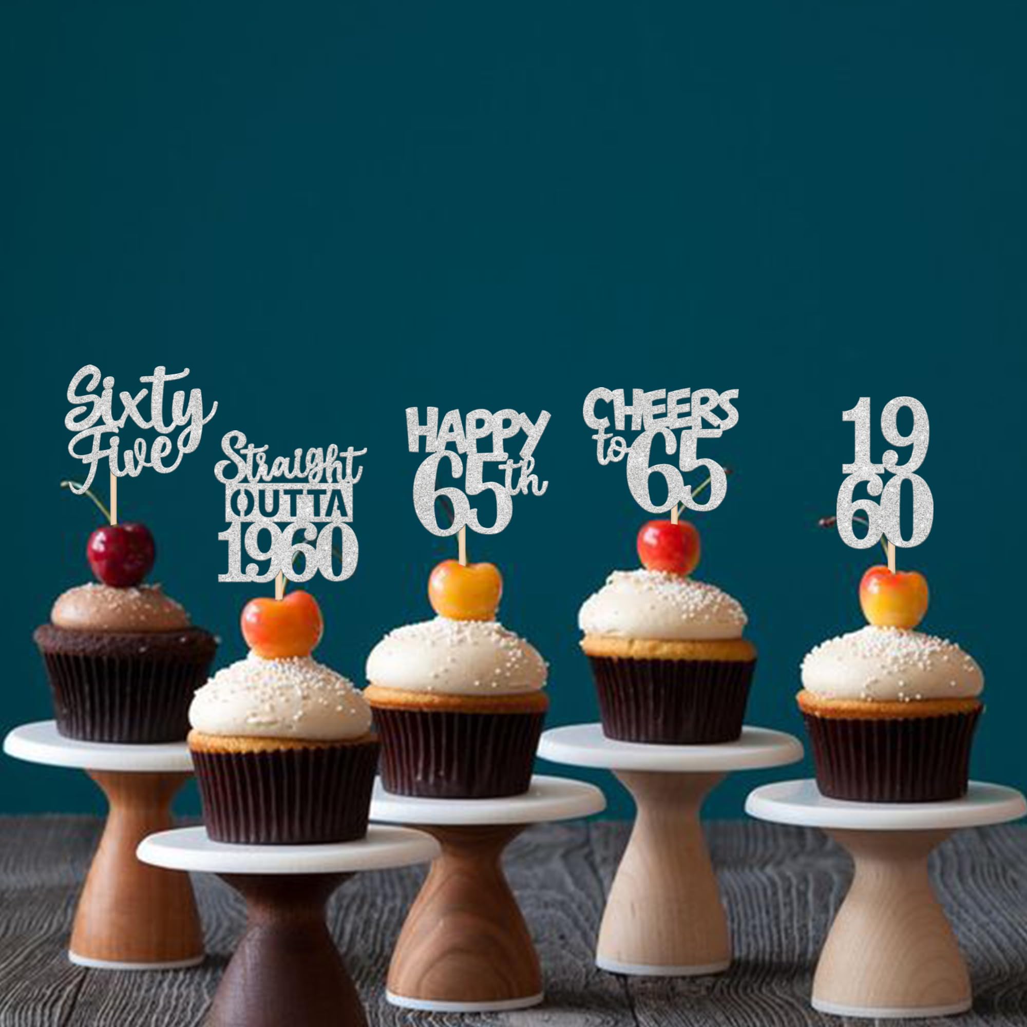 30 PCS 65th Birthday Cupcake Toppers Glitter Sixty Five Happy 65th Straight Outta 1960 Cupcake Picks for Cheers to 65 Fabulous 65th Birthday Anniversary Party Cake Decorations Supplier Silver Perfect for happy 65th bithday theme party, straight outta 1960 theme party, 65th wedding anniversary theme party,cheers to 65 years theme party cupcake decorations supplies. Pack of 30 pcs, 6 pcs of each design. The size is 2.3*4.6/ 2.2*4.6/ 1.9*4.6/ 2.1*3.9/ 1.2*4.6 inch ( with stick ) Made of high quality paper card stock,thick and sturdy. These straight outta 1960 cupcake toppers are one side glitter, another side is white, and they are intended for decoration only, please do not put them in oven or microwave. If the item you received has any defects, please contact us immediately. we will deal with it within 24 hours.