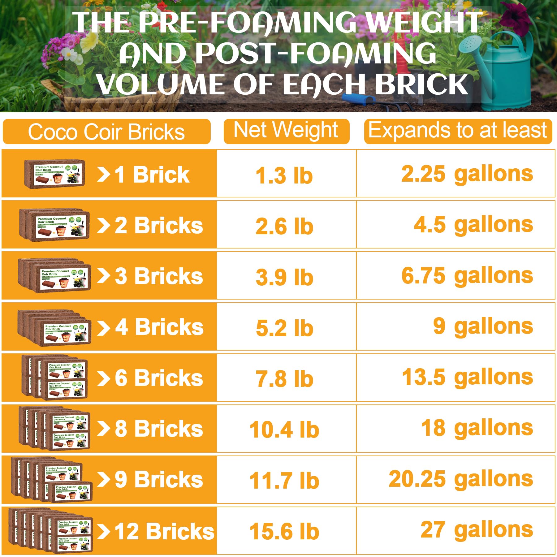 【Sustainable】Made from the fibrous husk of coconuts, our coco coir brick is a renewable alternative to traditional soil. Each brick measures 7.8x3.9x1.6 inches and weight 1.3 pounds
