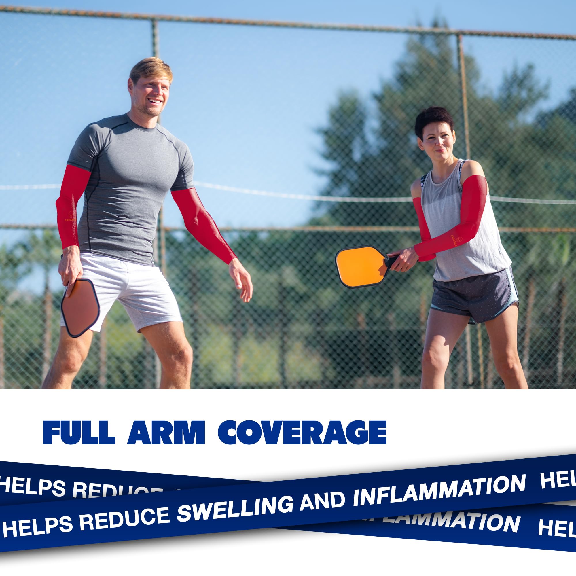 PROTECTION: Each compression sleeve arm protector is made from UV resistant material, our arm sleeves for women or men offer sun UV protection from over 98 percent of harmful rays; in colder months they make fantastic arm warmers