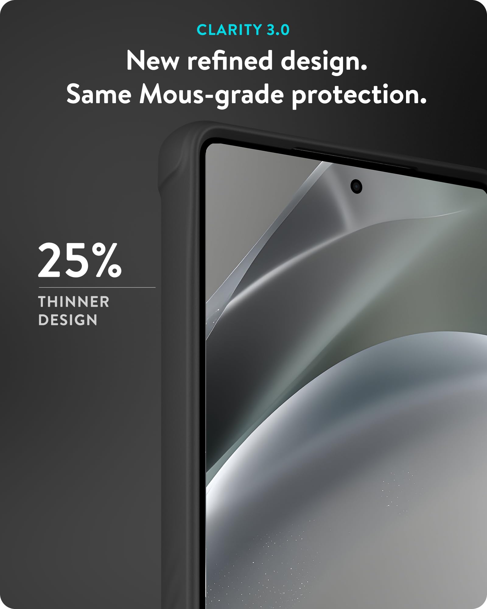 ENGINEERED TO PERFECTION – The perfect balance of refined design and robust defence, Clarity 3.0 is the culmination of years of expert phone case engineering. Sleeker and thinner than before, it also features a strategic cutout and rippled grip ribs