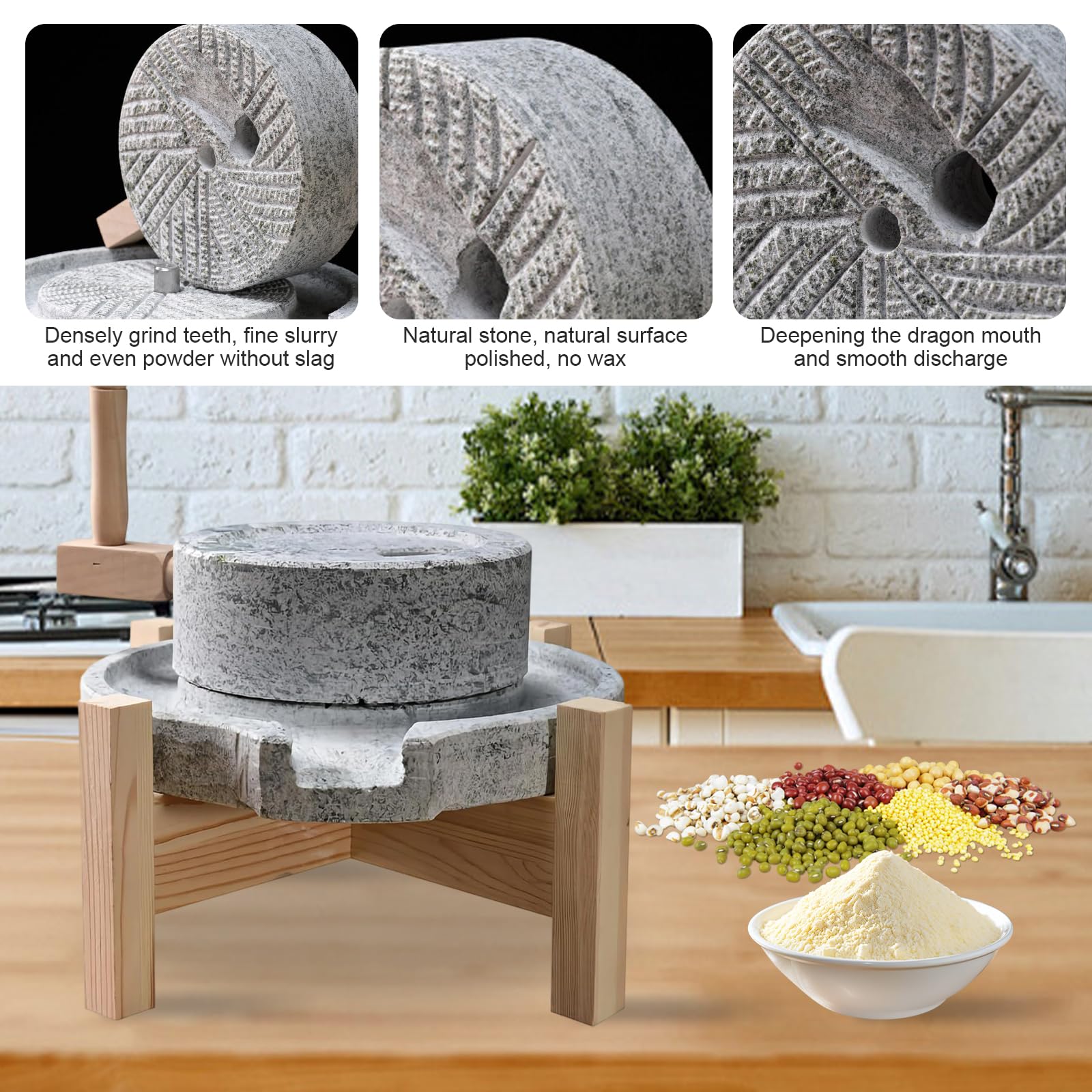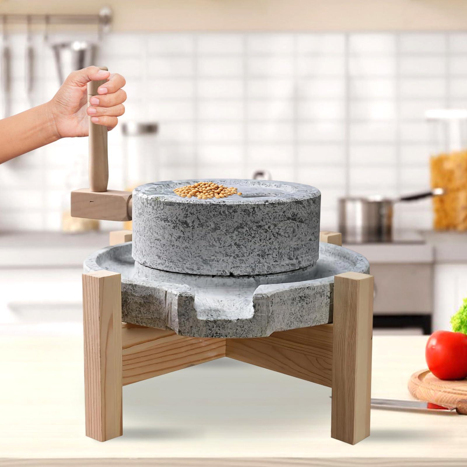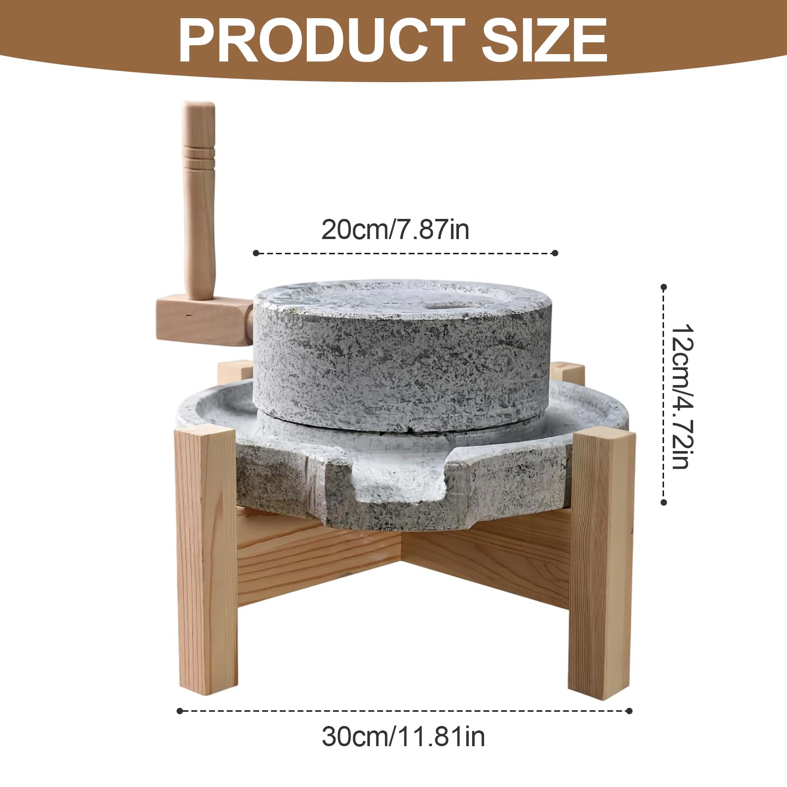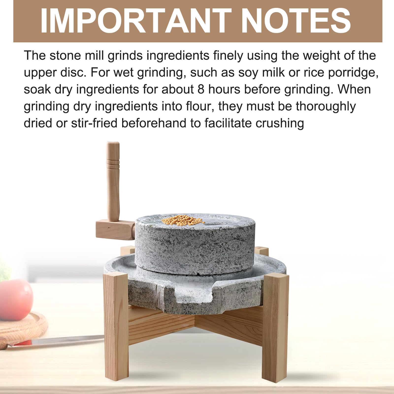 PakaLife Stone Grain Mill Grinder for Wet&Dry Foods,Cereal Bluestone Grinder Home Kitchen Stone Mill for Wheat, Berry, Rice, Food, Bean, Seed, Spice, Corn, Rice Paste,Traditional Manual Grinding Tool Experience Nature's Finest Grind: Premium Stone Grain Mill Versatile Performance: Effortlessly grind wet soybeans for milk, wheat for flour, corn for juice, sesame seeds, almonds, peppers, spices, mung beans, and more. Achieve ultra-refined powder or smooth liquid by multiple grinding passes or pre-soaking beans Authentic Stone Craftsmanship: Meticulously carved from natural bluestone with deep grinding teeth. Built sturdy for lasting durability, it grinds efficiently at low temperatures to perfectly preserve your ingredients' original flavor and vital nutrients. Remember: Always turn counterclockwise Engineered for Ease: The enlarged feed inlet allows convenient grain loading, while the ergonomic handle ensures comfortable, smooth operation for freshly processed goodness right at your fingertips Unlock Nutritional Power: Unlike high-speed mechanical processing that damages flavor and nutrients with heat, our stone mill relies on its natural weight for slow, even grinding. This gentle method yields healthier, more nutritious pastes and powders. Hassle-Free Maintenance: Featuring a detachable rotating plate and chassis with a water-polished smooth surface. Cleaning is effortless—simply rinse with water after use What's Included? 1 x stone grain mill Description: Material: stone Reception Desk Size: 11.8''×11.8''×11.8'' Reception Desk Weight: 35.3lbs