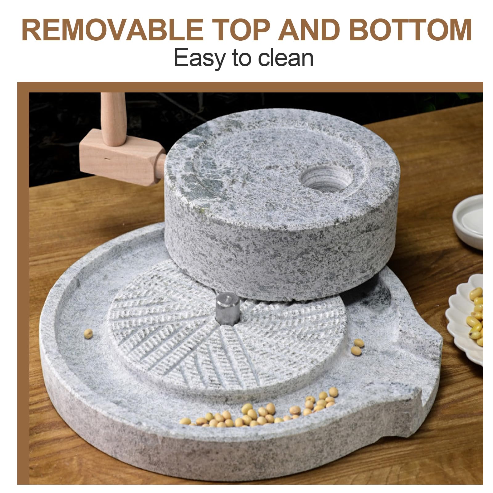 【Easy to Clean】-The detachable design of the rotating plate and chassis and the smooth surface after multiple water-grinding processes make the product easier to clean. All you need to do is rinse stone grinder mill with water
