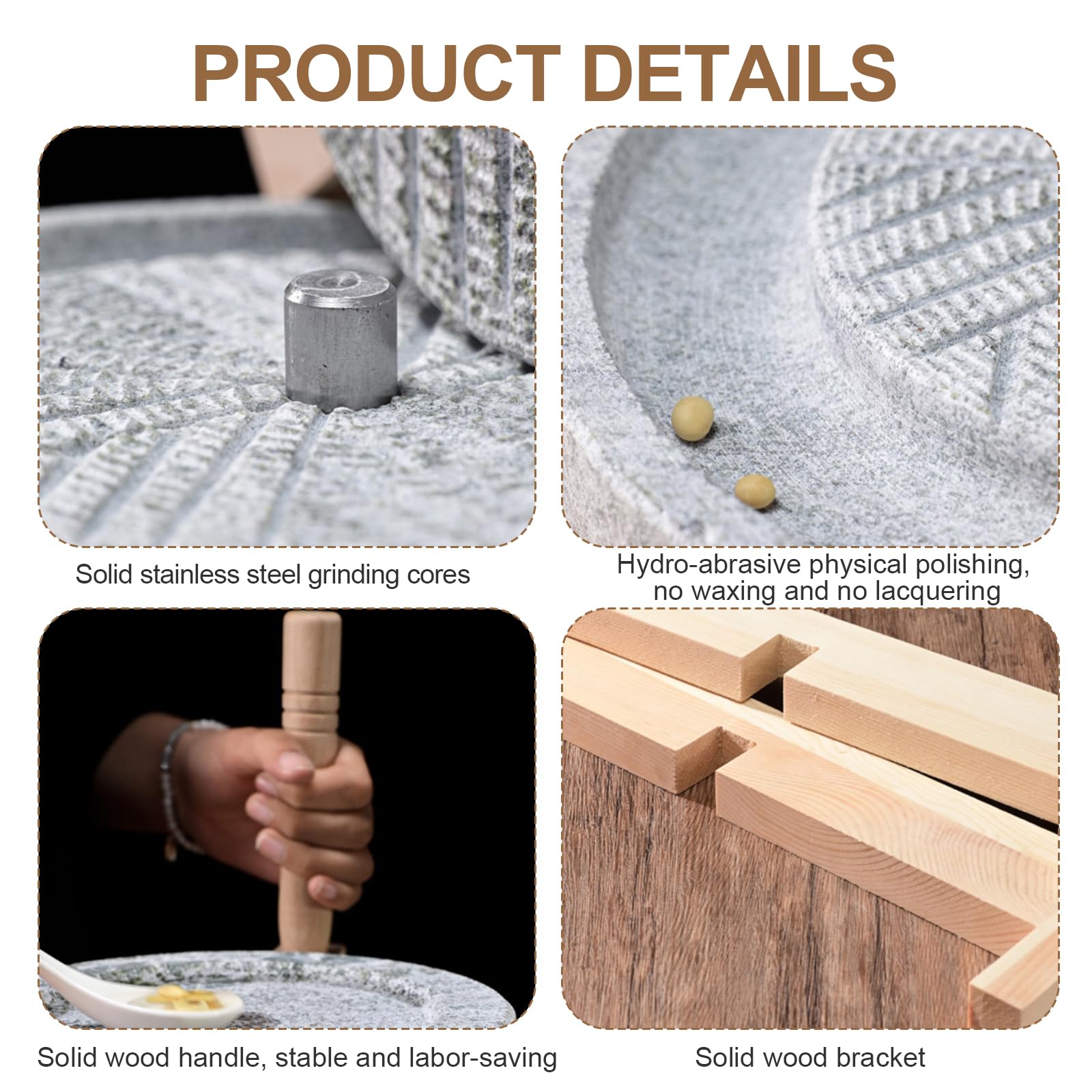 【Nutritional Health】- Compared with mechanical processing, high temperature will destroy the flavor of soybeans, while our stone grinder grinds slowly and evenly, relying on stone mill grinder weight to grind the ingredients into powder or paste, making the ground ingredients more nutritious and healthier