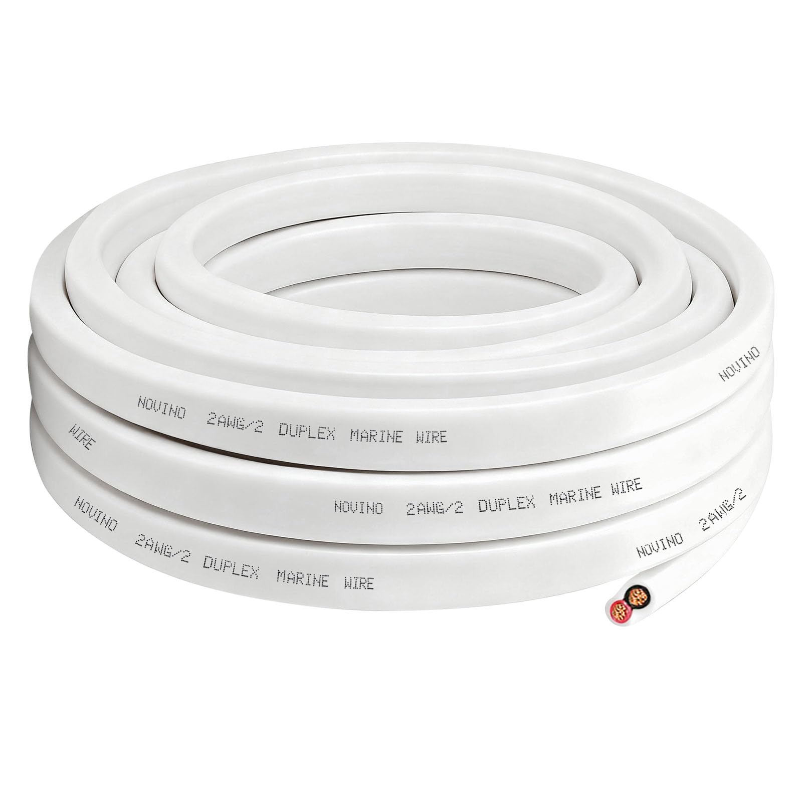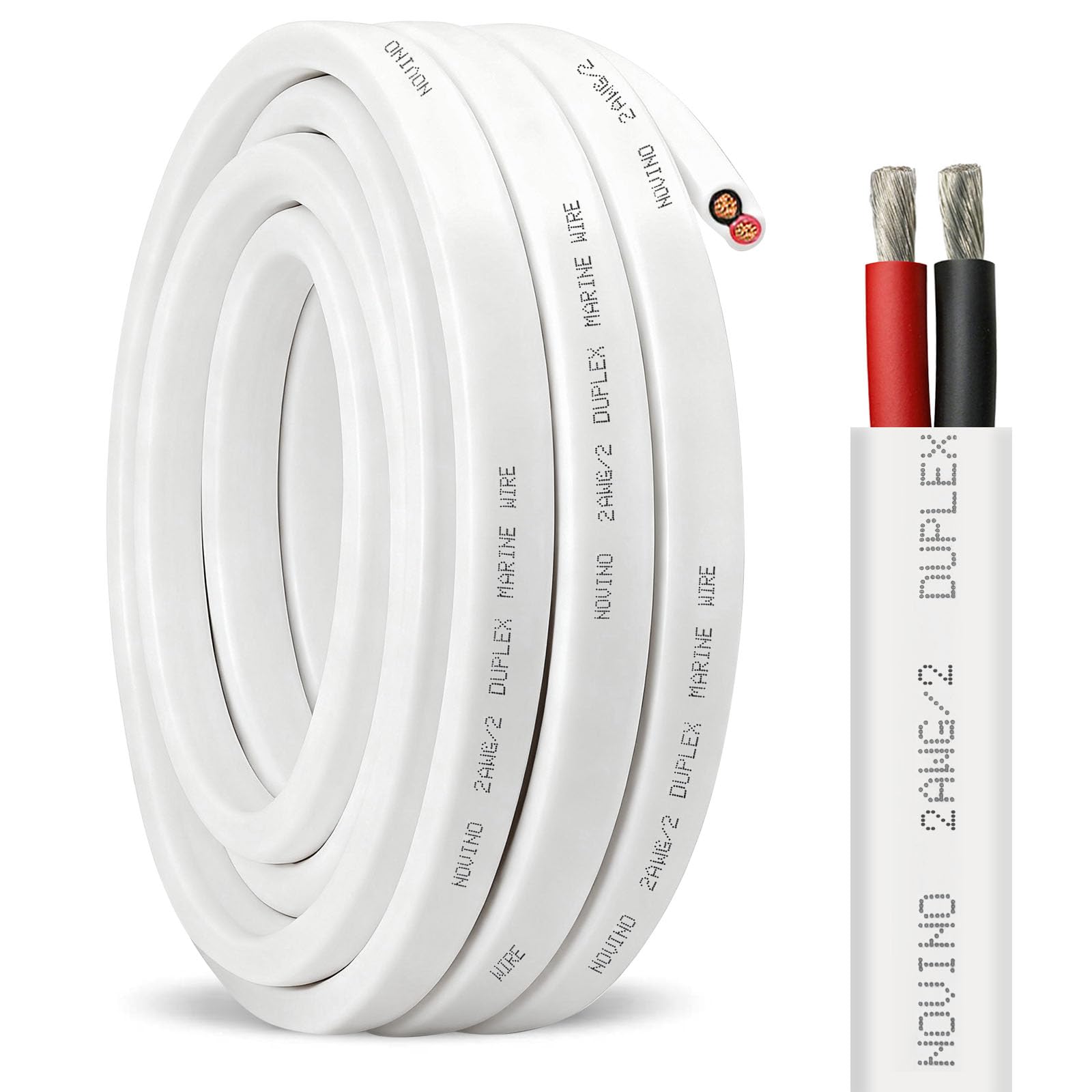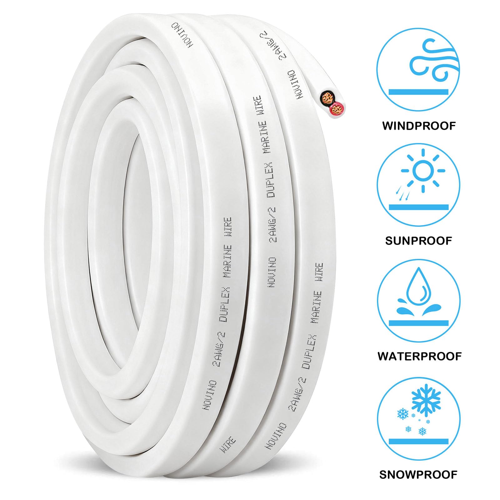 2 Gauge Duplex Marine Wire Tinned Copper Boat Cable for Automotive Boat Outdoors Extreme Environments(marine, rivers, lakes, solar applications) Marine wire specifications: Insulation Material: PVC Conductor Material: Tinned copper Type: LOW VOLTAGE Application: Marine and brake Insulated Jacket: PVC(white) Conductors: 2 color coded red and black Long Length: 20 ft Max Voltage: 600V Gauge: 2AWG Temperature: 105°C Dry/75°C Wet An excellent choice for wiring marine,automotive outdoor applications: The 2 gauge AWG marine rated wire use in pontoon boat/bass boat/boat trailer/ fish finder/truck/RV/Van/ATV trailer electrical system For wiring light (spotlight,underwater light,flood light, navigation lights,headlight), solar inverters, shore power,bilge pump,extend new bank charger leads, speaker wire,electric brake wires, radio stereo, alarm etc Up to standard of UL 1426 ,SAE, ABYC etc ,our marine electrical copper boat cable with special PVC insulations can prevent Anti-corrosion,salt waterproof corrosion,extreme temperature fluctution,heat-shock, resist abrasion,wire oxidation
