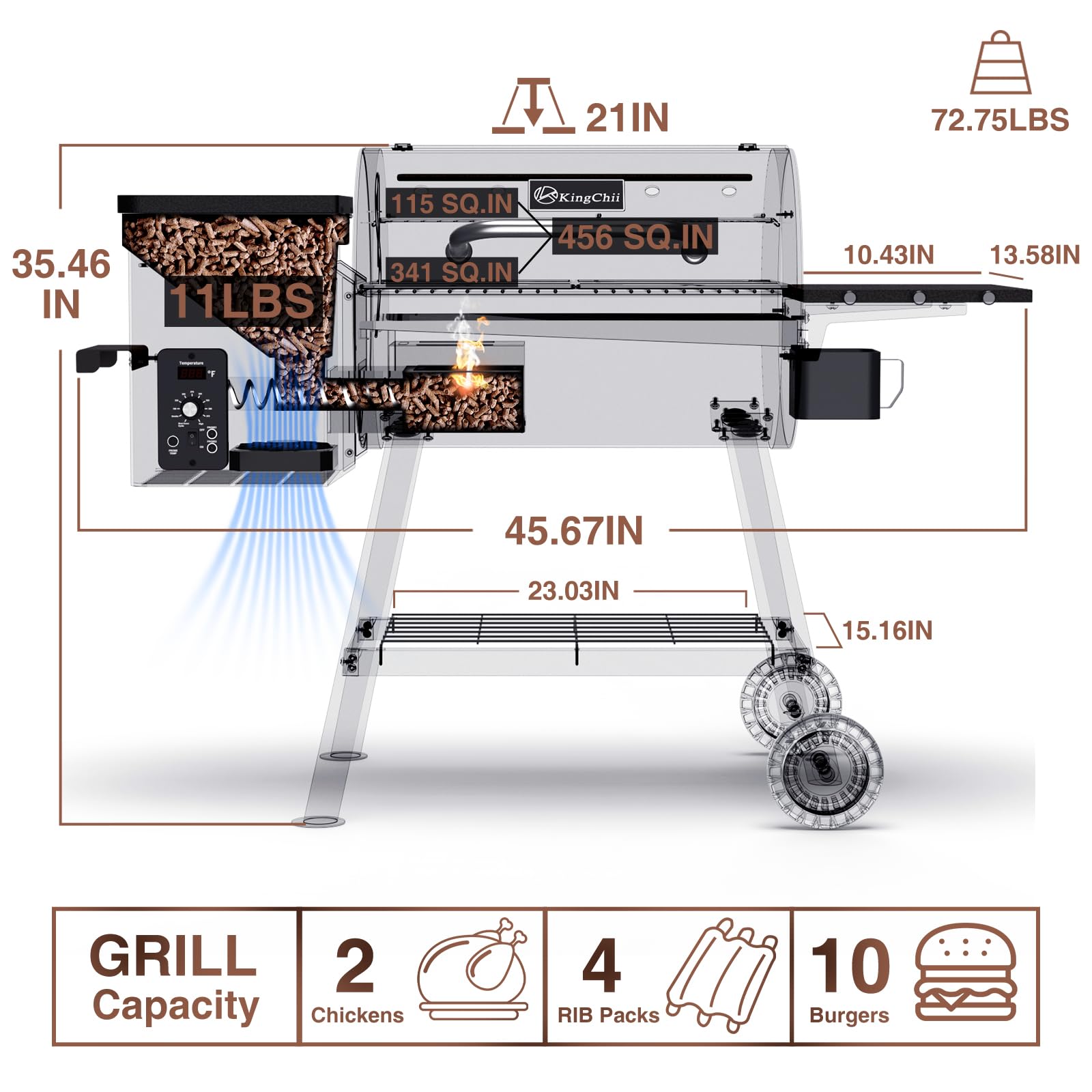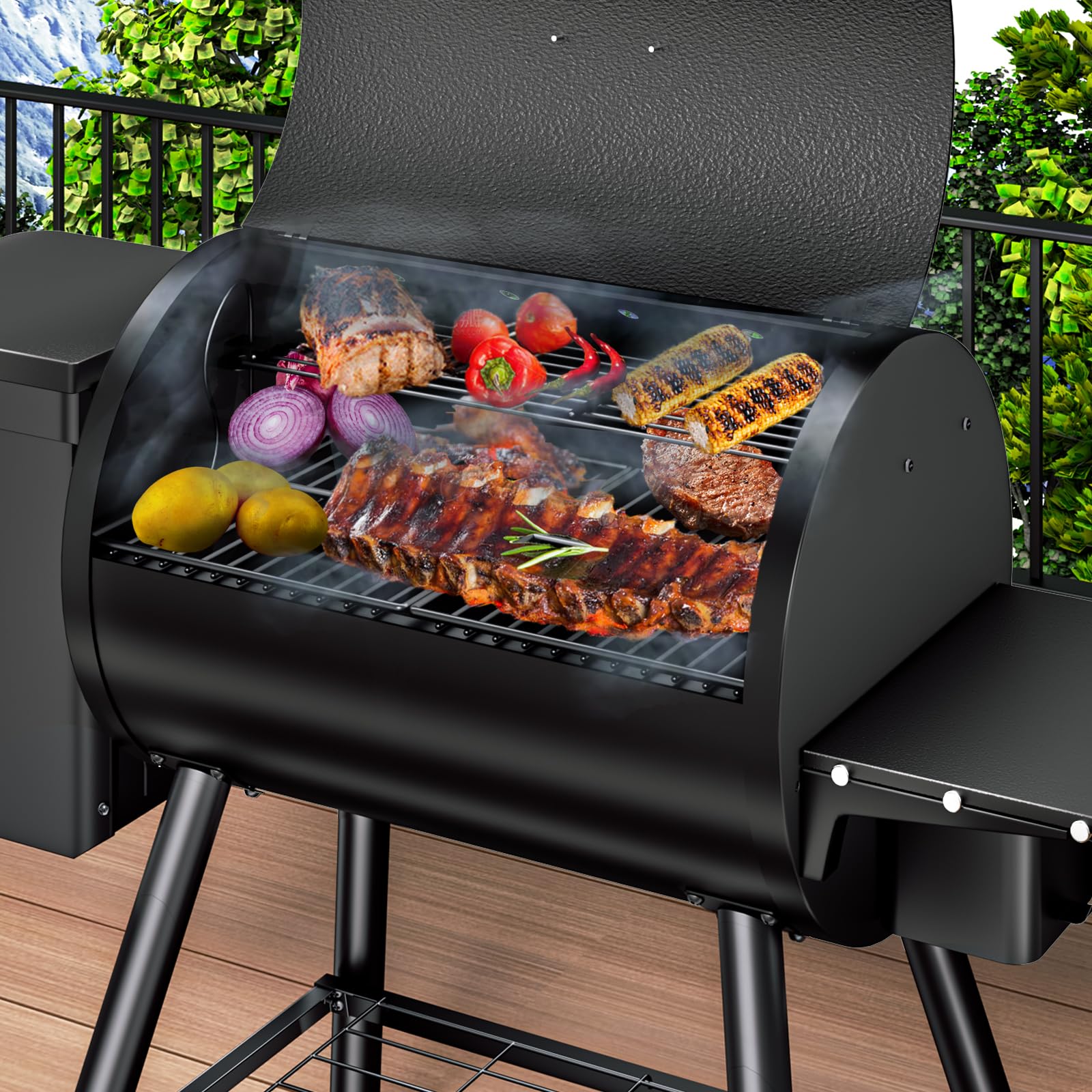 WOOD-SMOKED FLAVOR: With 11-pound hopper capacity, you can enjoy the delicious taste of wood-smoked food. Our grill uses D2 feeding technology and a liftable hopper to save space and ensure longer burning time.