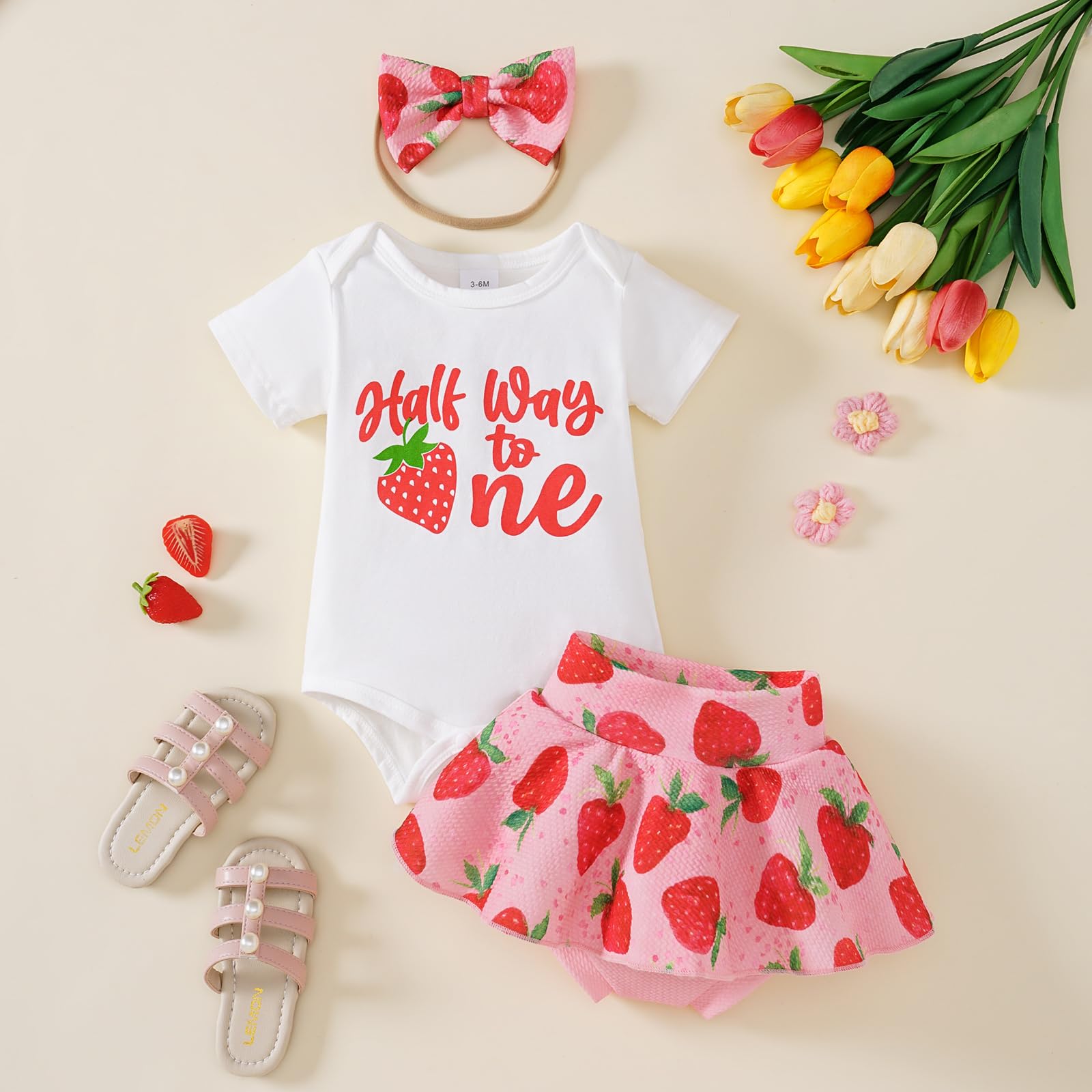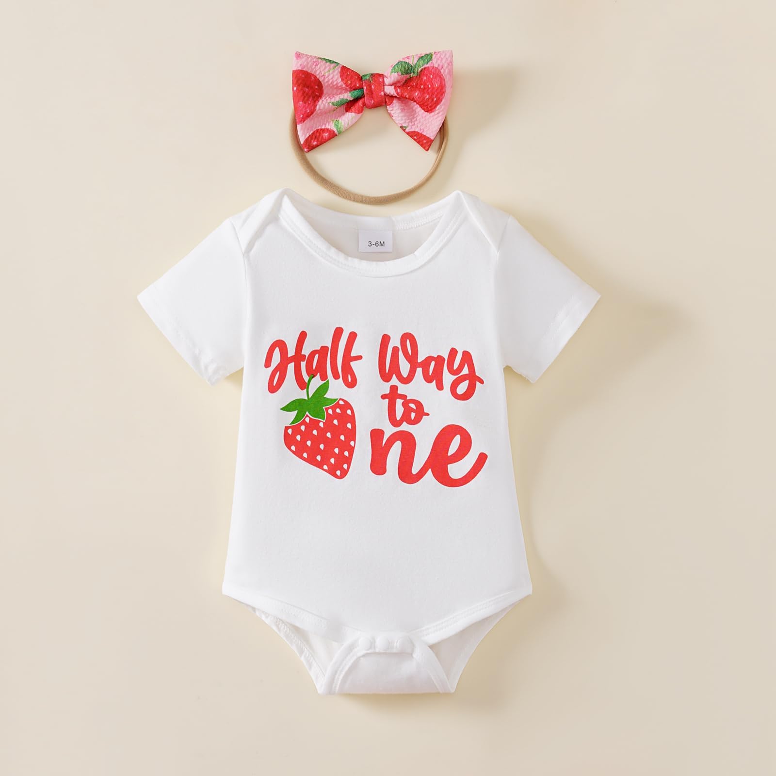 Design: stylish Half Way to One, with cute donut shorts, fun Half Way Around the Sun, with Sun print shorts. Best Gift for Darling's first birthday!