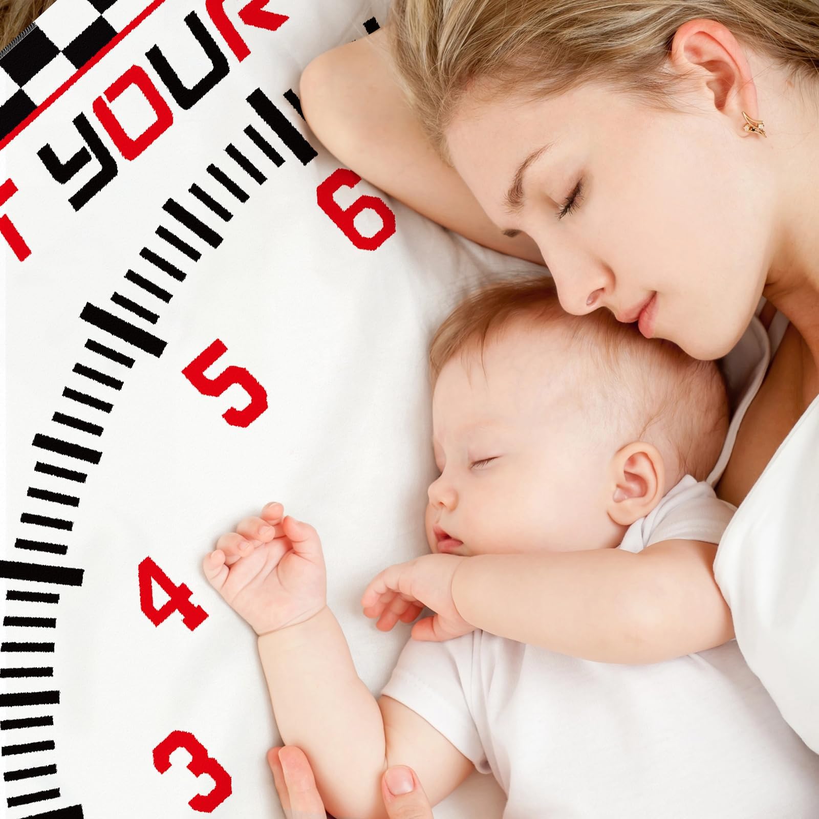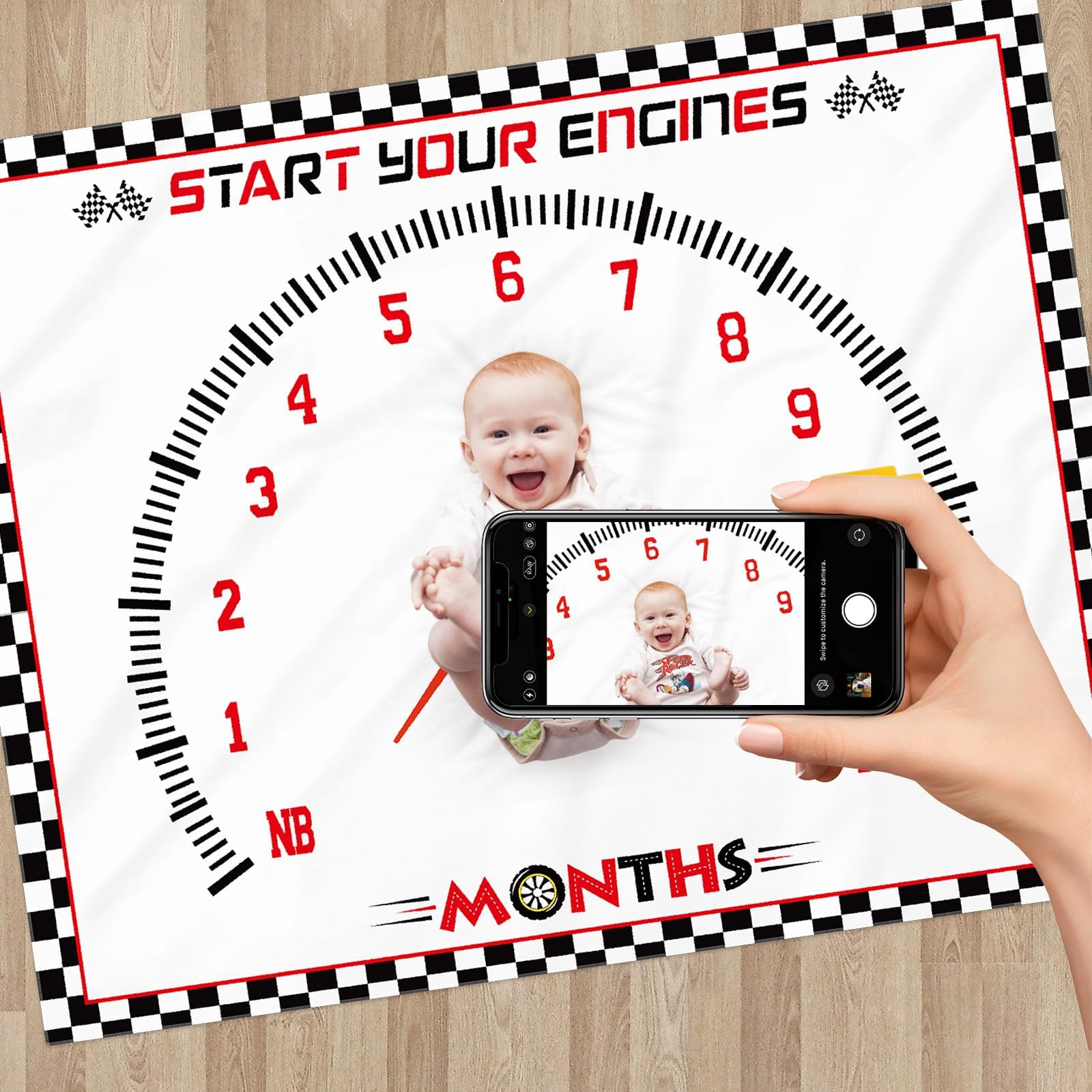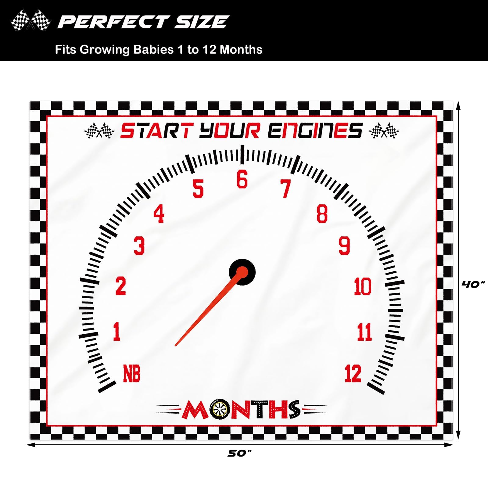 MULTIPURPOSE & HIGHLY USED BABY ITEM - You can take newborn photos 1-12 months to post on social media with our racing theme milestone blanket. It can also be used as a Christmas gift, baby daily playmat, baby shower gift, nursing swaddle blanket, security Blanket.
