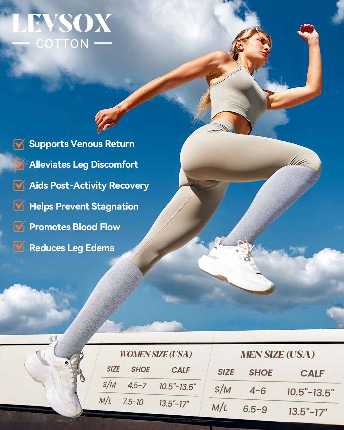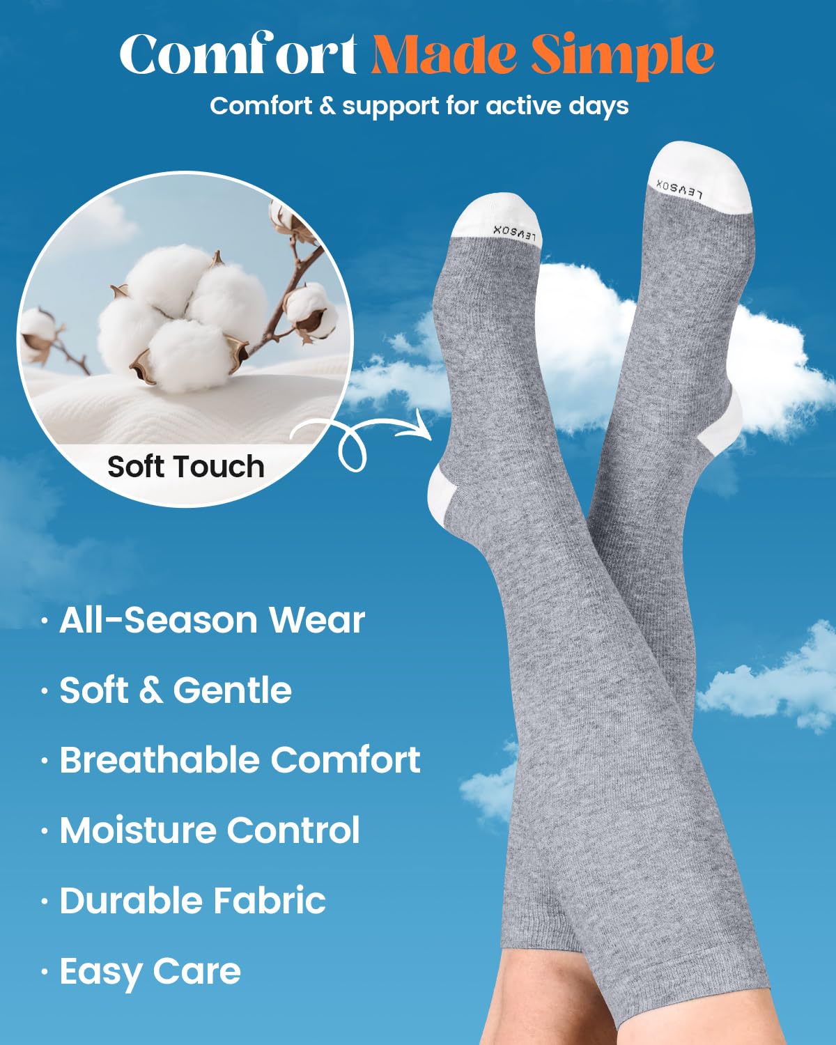 Cotton compression socks: Made from gentle cotton thatβs smooth, soft against the skin, and breathable. The comfortable fabric makes our soft compression socks a great choice for everyday wear and ideal pregnancy compression socks for expecting moms