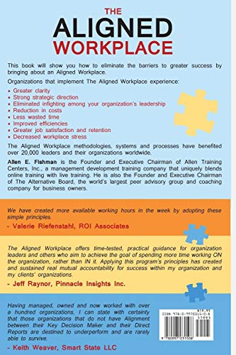 All the biggest barriers to an organization's success - lack of clarity on the vision, the absence of a strong strategic plan, factionalism and infighting among members of the organization's leadership, and many others - can be overcome once the executive team understands and commits to Alignment. Organizations that implement The Aligned Workplace experience: - Reduction in costs Less wasted time Improved efficiencies Greater job satisfaction and employee retention Decreased workplace stress
