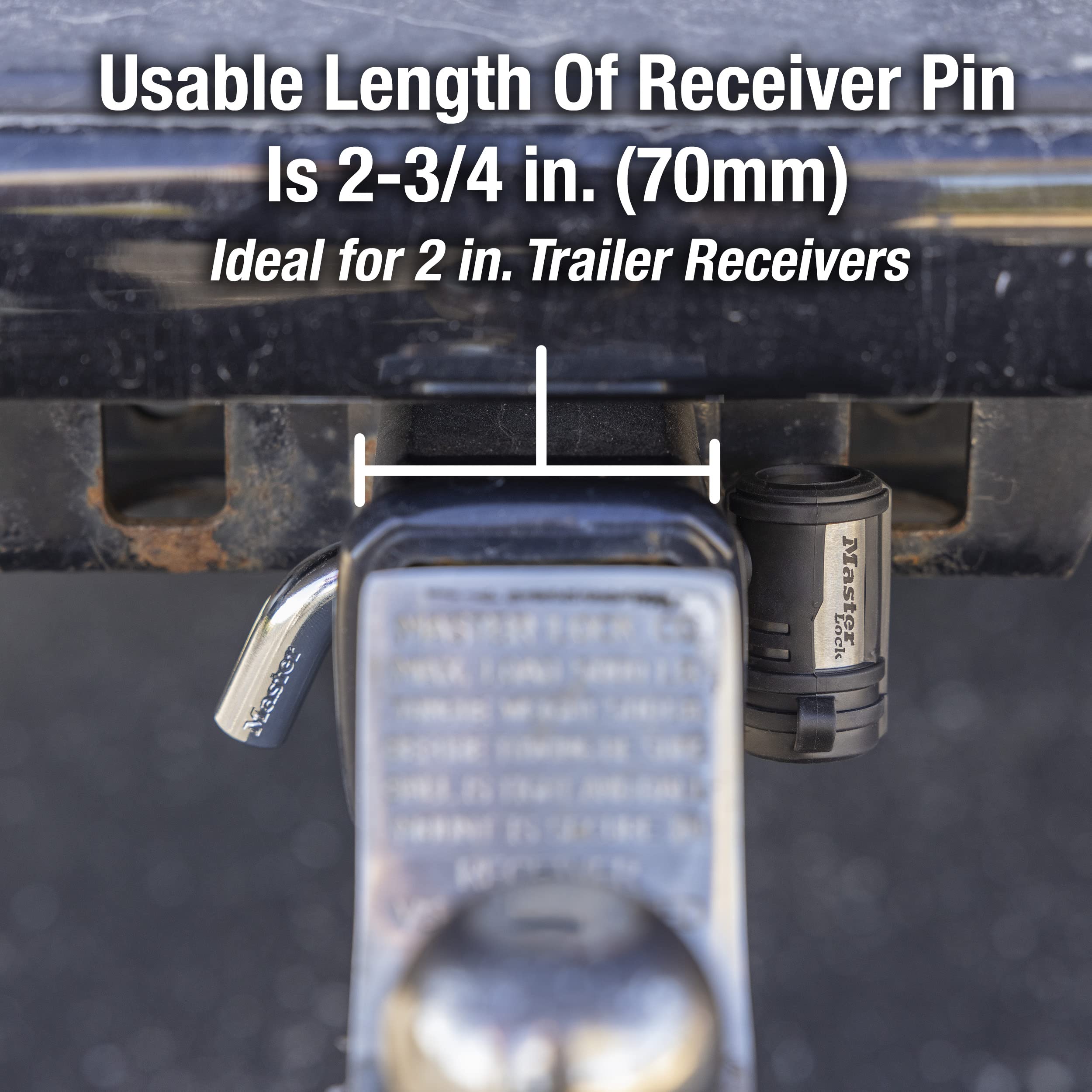 The Master Lock 2866DAT features 1/2in (13mm) and 5/8in (16mm) Swivel Head receiver locks. The receiver lock includes the Push to Lock locking mechanism, easily used by pushing the lock body firmly onto the pin and removing the key. The Weather Tough seal and water tight cap provides additional protection from moisture and dirt. 4-pin cylinder for added pick resistance.