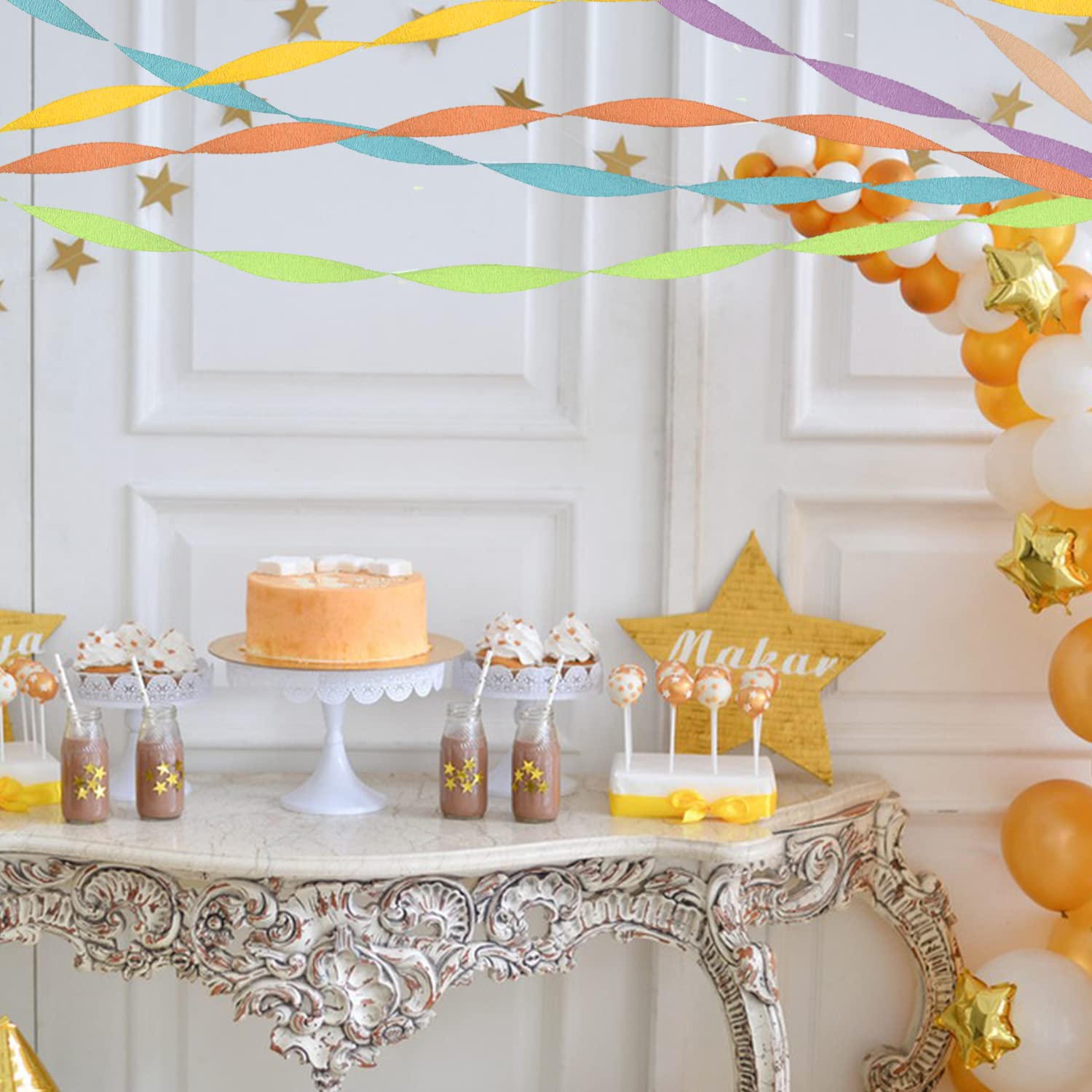 Easy to use: you just need to tie these streamers together and hang them where you need These streamers birthday decorations are neatly bundled and easy to untie, to decorate or twist the paper streamers into spiral shape as the background wall,also could simply hang pastel streamers from the ceiling to create colorful streamer effect。