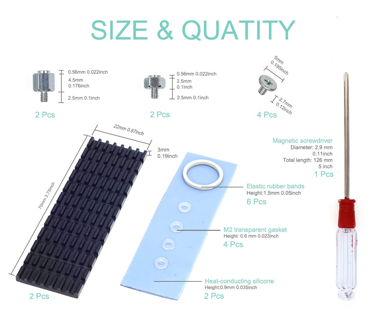 5. Includes high-quality studs, screws and screwdrivers required for the installation of m. 2 SSDS, providing you with one-stop service.
