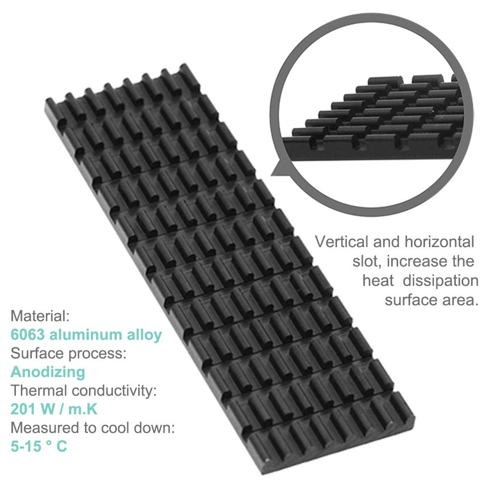 3. Vertical and horizontal Groove design, greatly increase the heat dissipation area, with 5°C - 20°C cooling effect (Varies depending on the environments), cool your M.2 SSD to a safe temp to avoid overheating and throttling, improve your computer's performance.